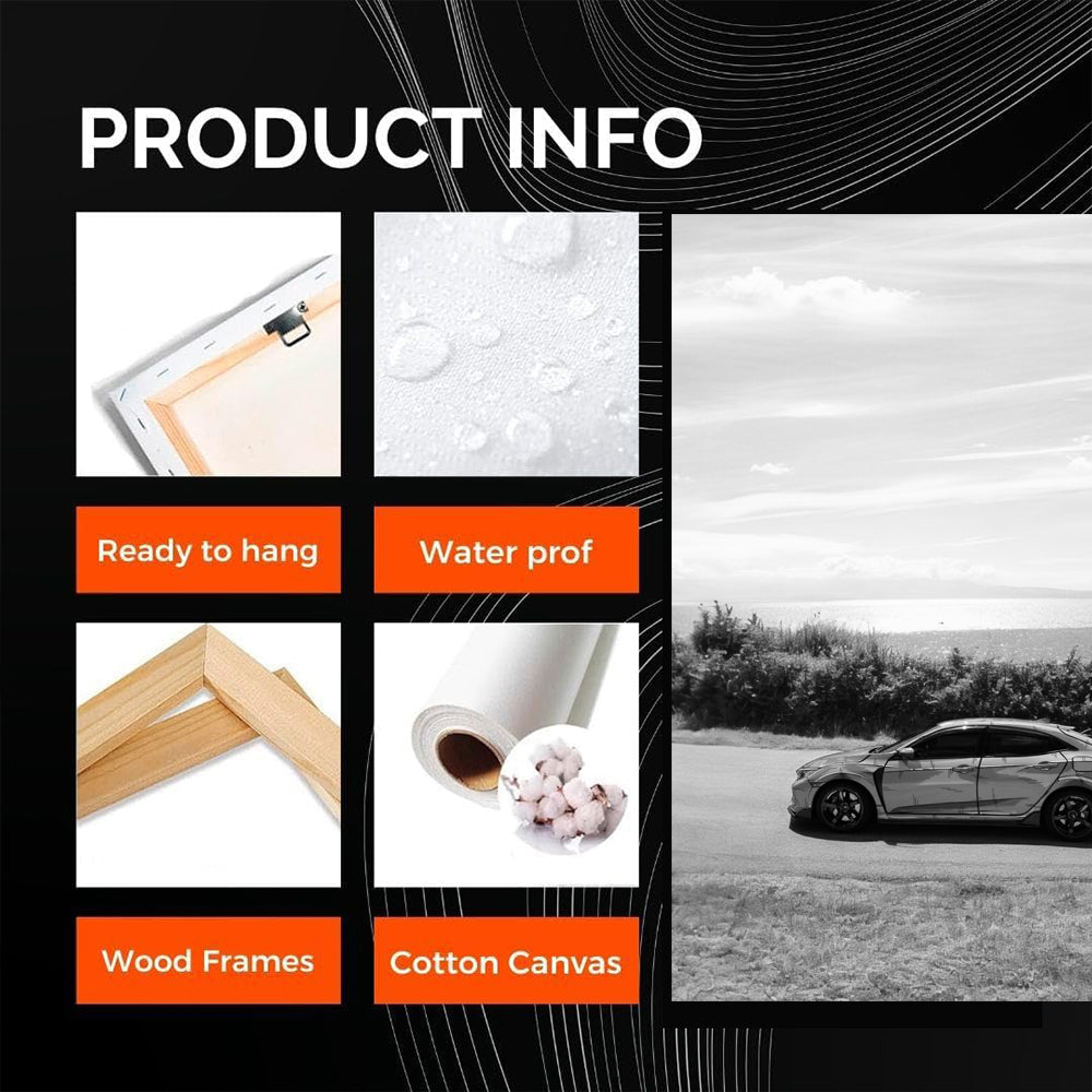 Yo, bro, check out the Honda Civic poster - it's a masterpiece on the wall! Black and white painting, like exhaust in the night. Wall art for those who respect power and style. Looking at it, you feel the roar of the engine and the smell of burnt rubber. See more from the collection: Honda Art