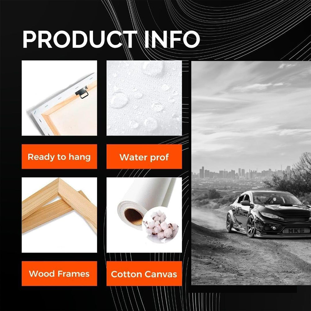 This "Honda Civic Bw" painting is just a bomb! Wall art for true fans of Japanese cars. A poster with your favorite car that will immediately add boldness and style to any room. Show everyone that you are in the know and know a lot about real cars! See more from the collection: Honda Art