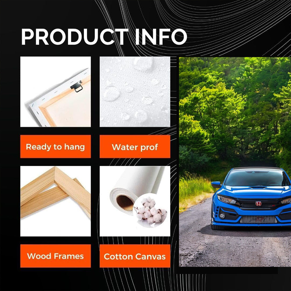 This painting of a blue Honda Civic is a real poster for boys. Wall art in its purest form: boldness, style and nature. Such a car on the wall is not just a painting, but a symbol of freedom and speed. See more from the collection: Honda Art
