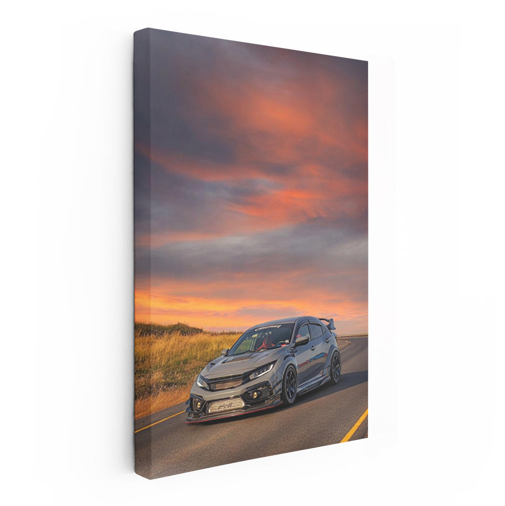 Honda Civic in Grey at Sunset - Sleek and Stylish Wall Art