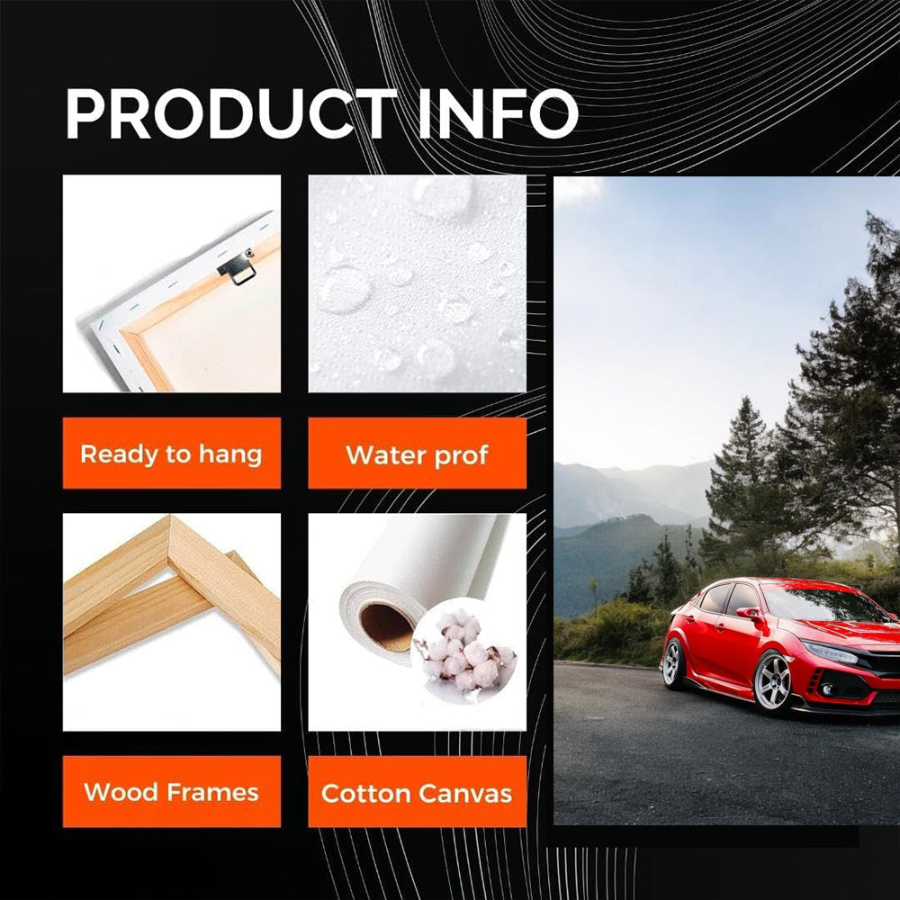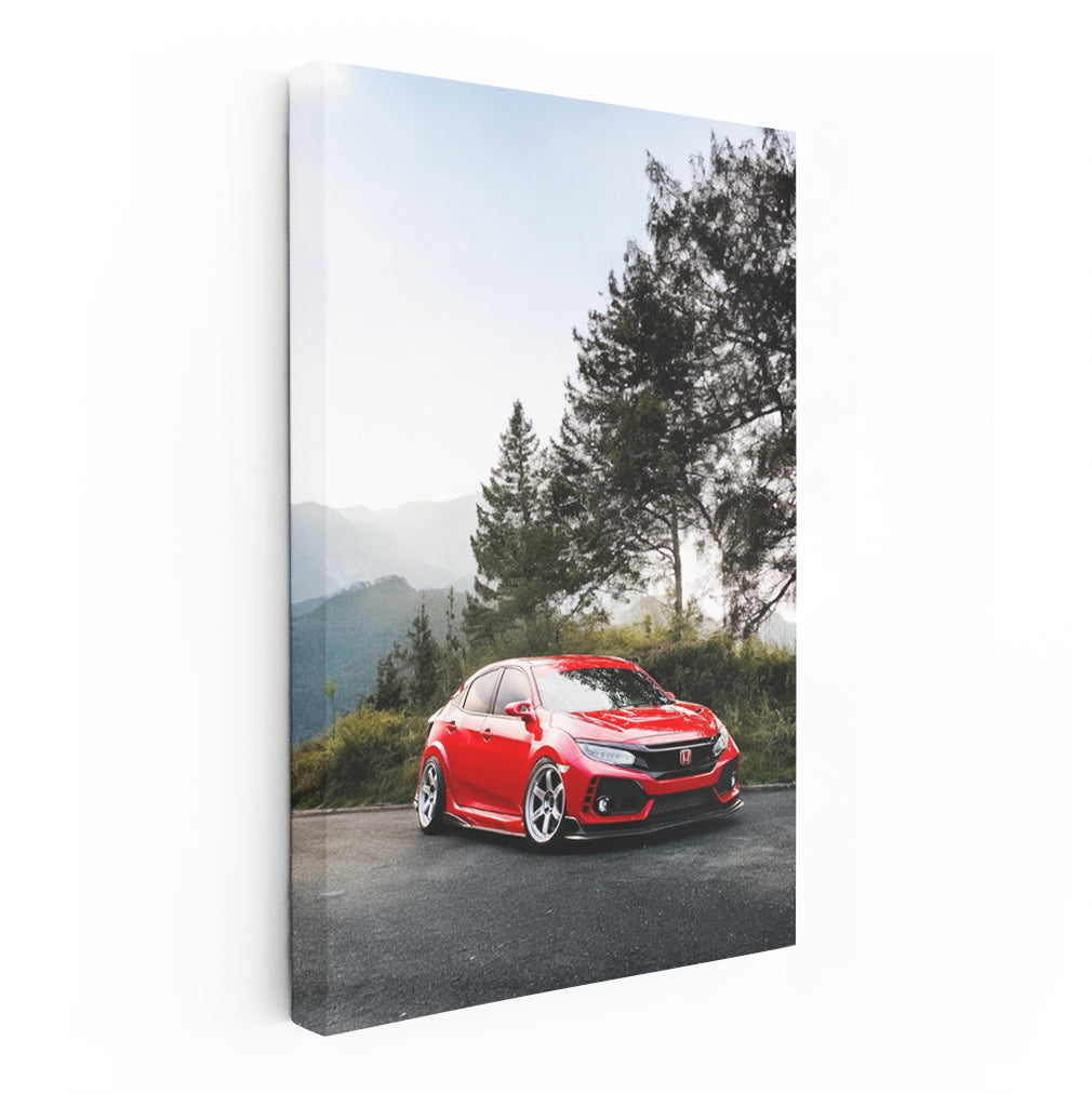 A painting of a Honda Civic in the mountains is not just a poster for the wall, but a real masterpiece for car fans. This wall art screams about speed and drive. You see it - and immediately want to press the pedal to the floor, feel the power under the hood. See more from the collection: Honda Art