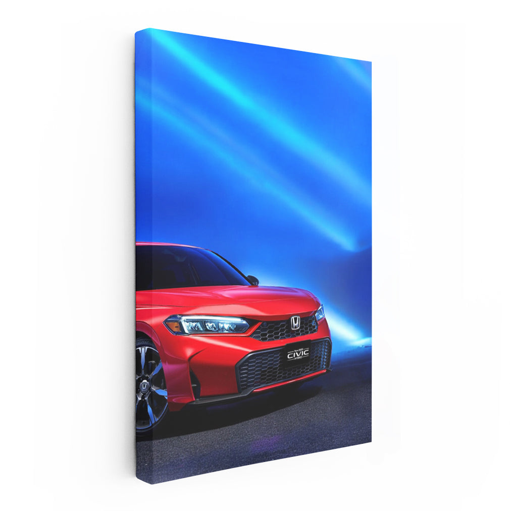 Honda Civic in Red Neon - Sleek and Sporty Ride Wall Art