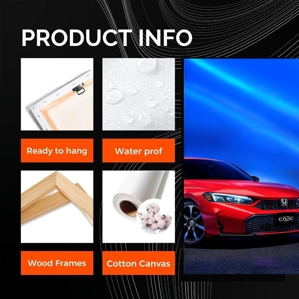 This painting is just a bomb! Red Honda Civic in neon surroundings is the highest level of wall art. This poster charges with energy, like a turbine at maximum. If you are a fan of cars, then this wall art simply must decorate your wall. See more from the collection: Honda Art