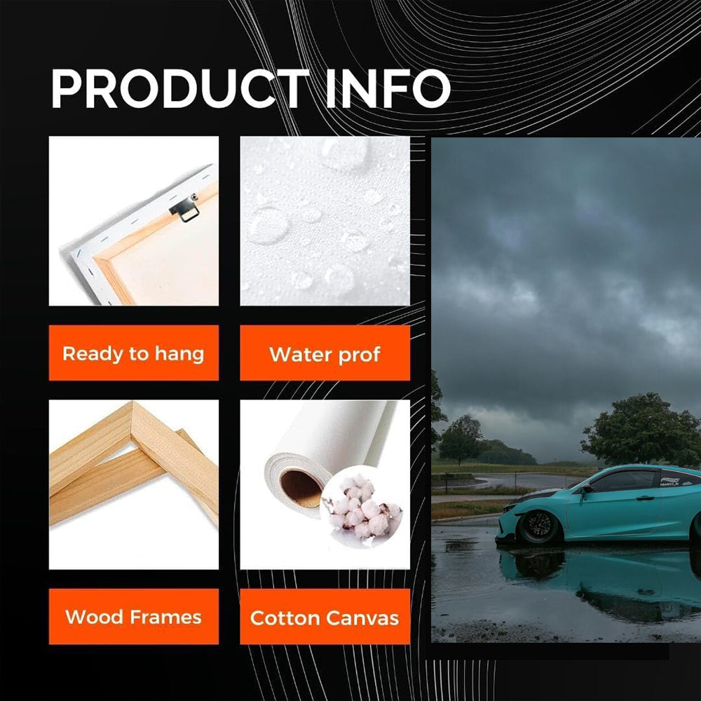When you look at a poster of Honda Civic in cloudy weather, you can almost feel the roar of the engine. Wall art for those who know a lot about cars. This painting is like adrenaline in a frame, with a hint of speed and style. For true car fans - a must-have! See more from the collection: Honda Art