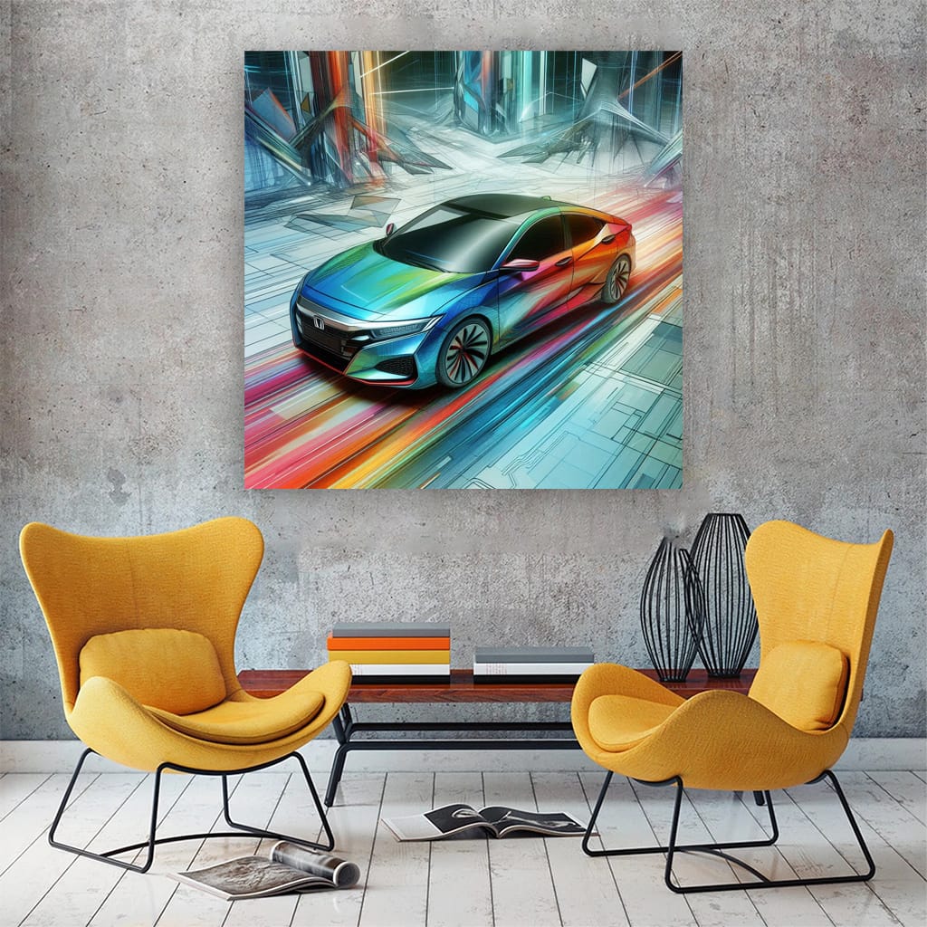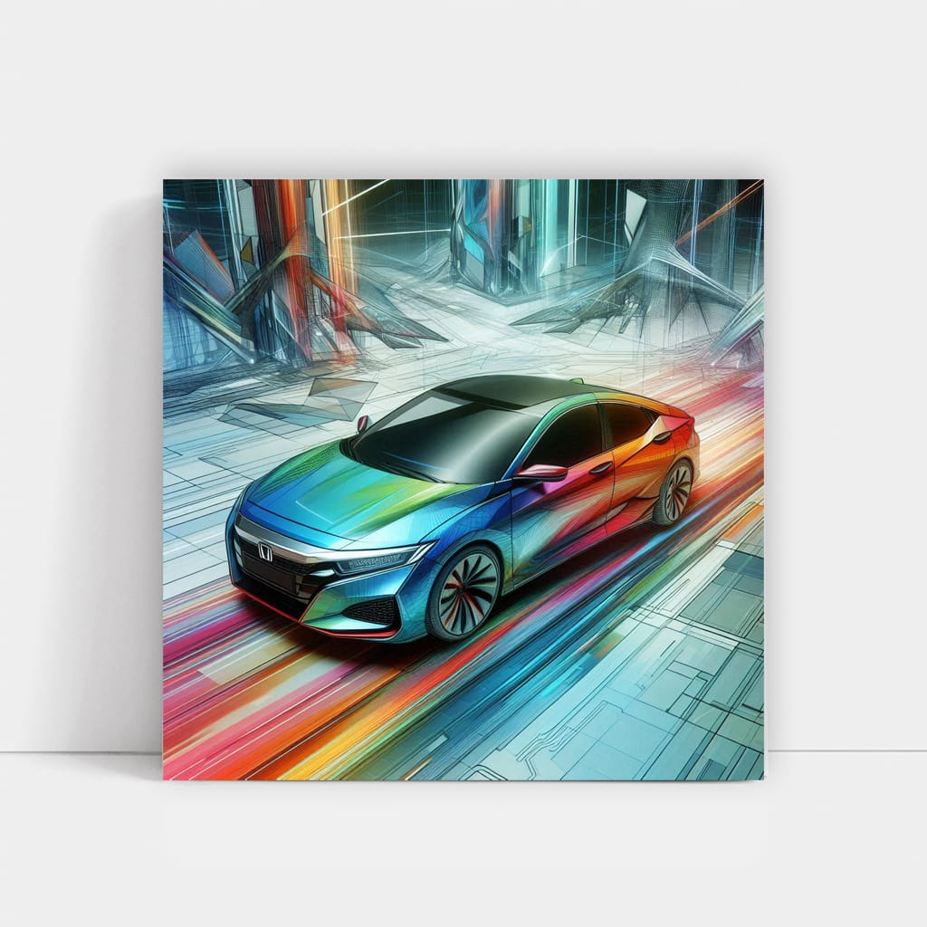 This Honda Insight poster is a true masterpiece for car lovers. The painting with abstract lines and bright colors evokes a thrill, as if the engine is roaring. This is wall art for those who live life at full speed and appreciate style in every detail. See more from the collection: Honda Art
