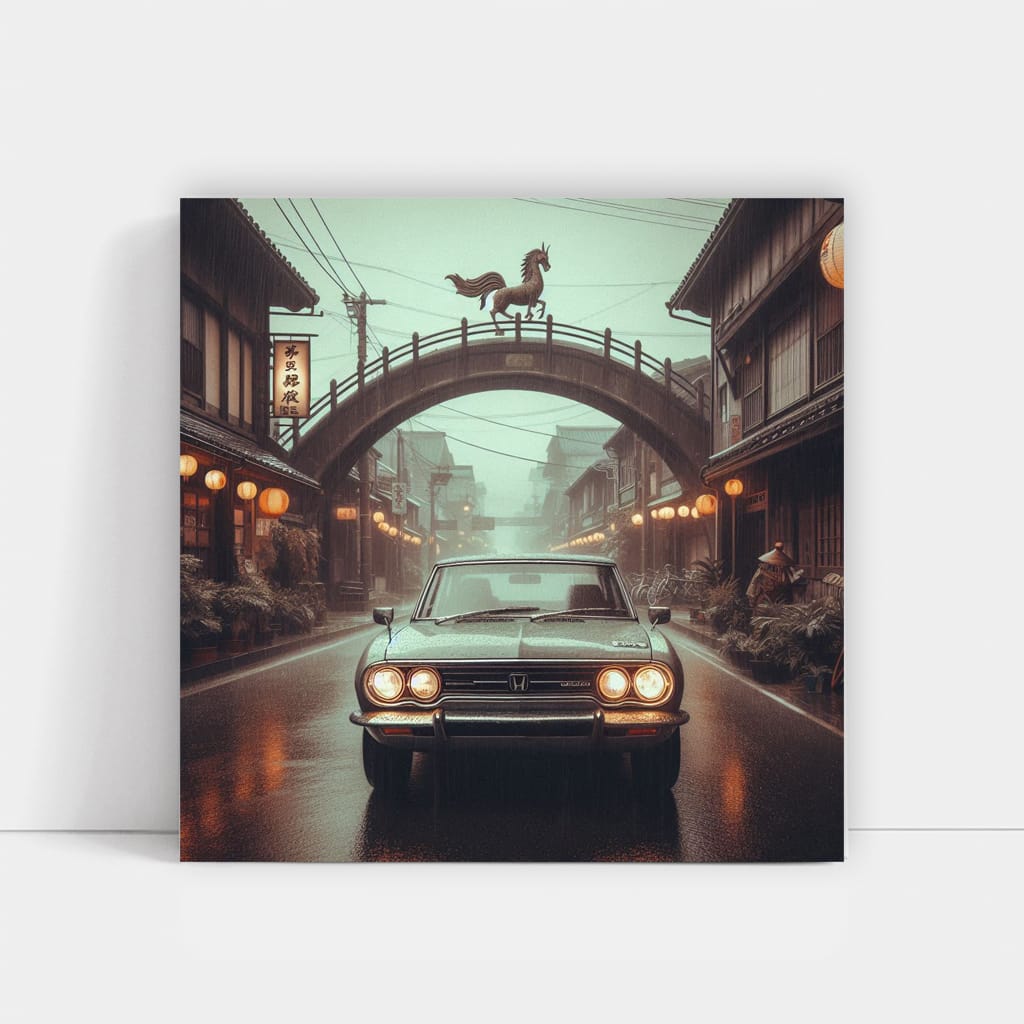 Honda Vintage Retro in Rainy Weather - Classic Ride Wall Art