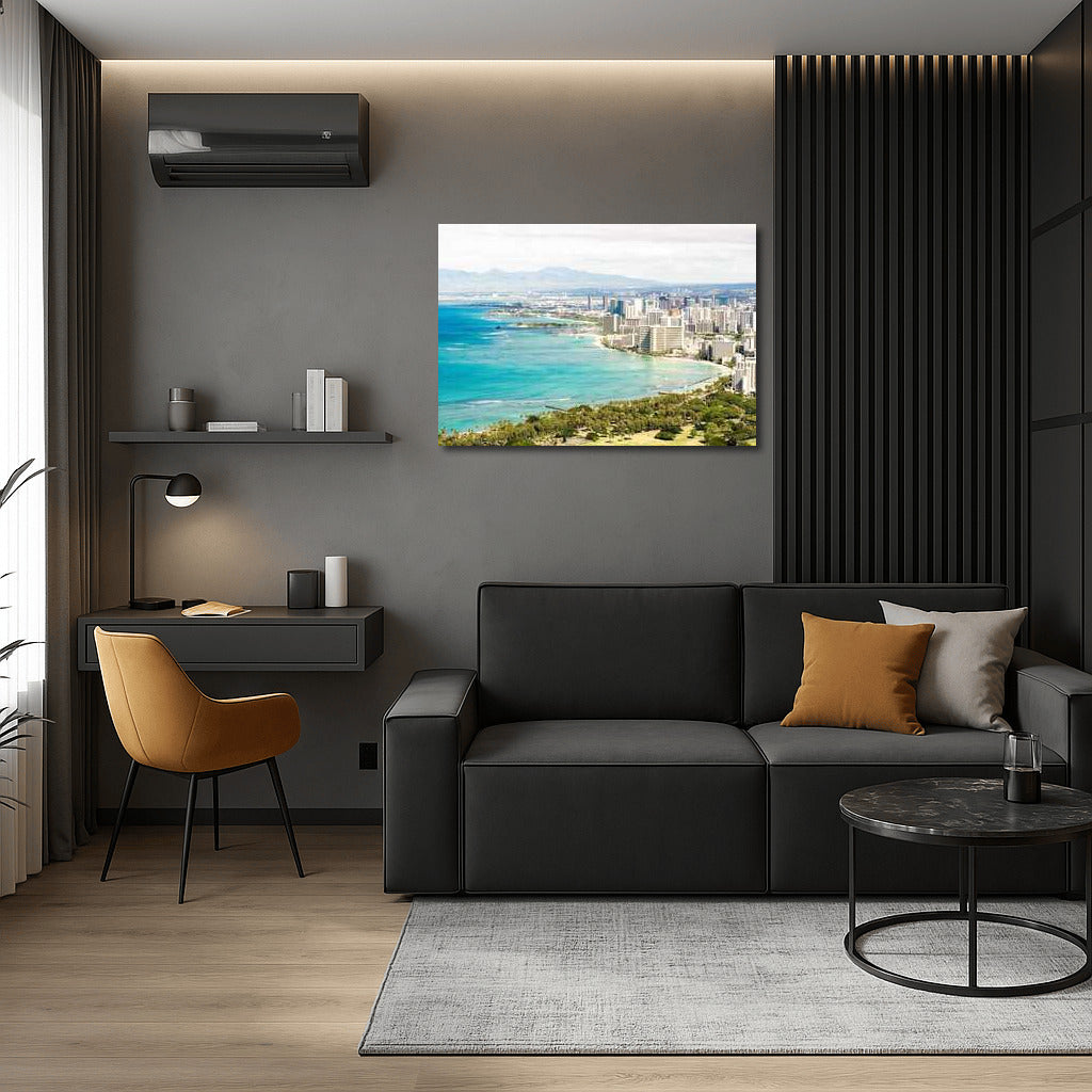 Immerse yourself in the Honolulu atmosphere with this Cityscapes Skylines painting. The perfect wall art for your home. See more from the collection: Cityscapes & Skylines Art
