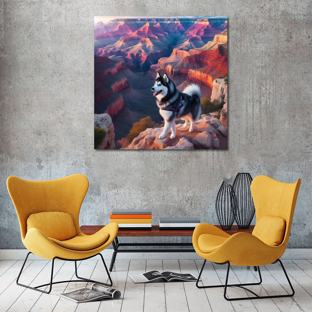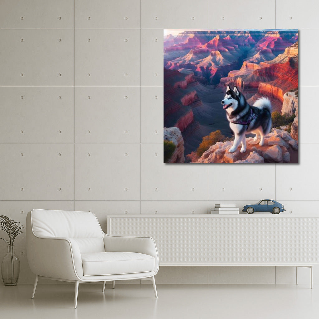 Husky in the grandeur of the Grand Canyon. A poster that inspires adventure and love for nature. Dream wall art. See more from the collection: Animals Art