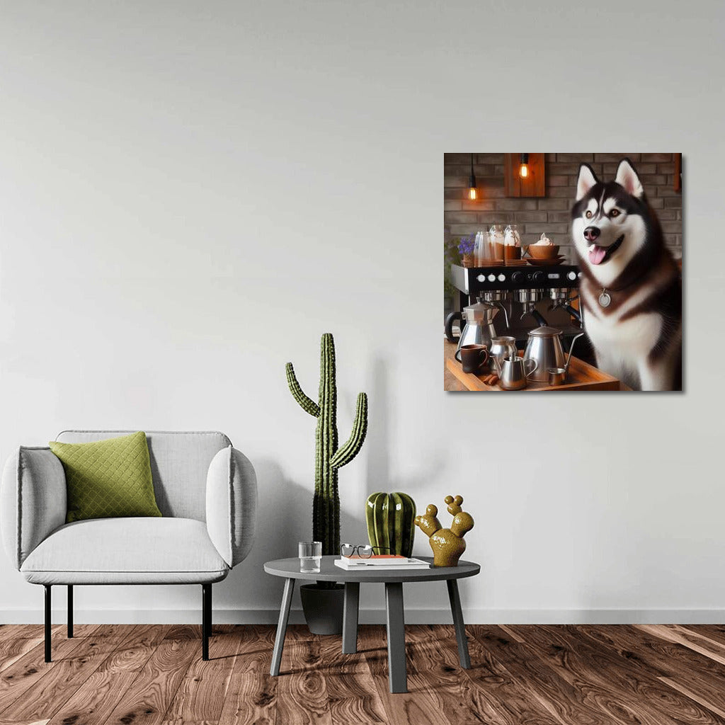 Husky Barista at the Coffee Machine: Cozy Style for the Interior Wall Art
