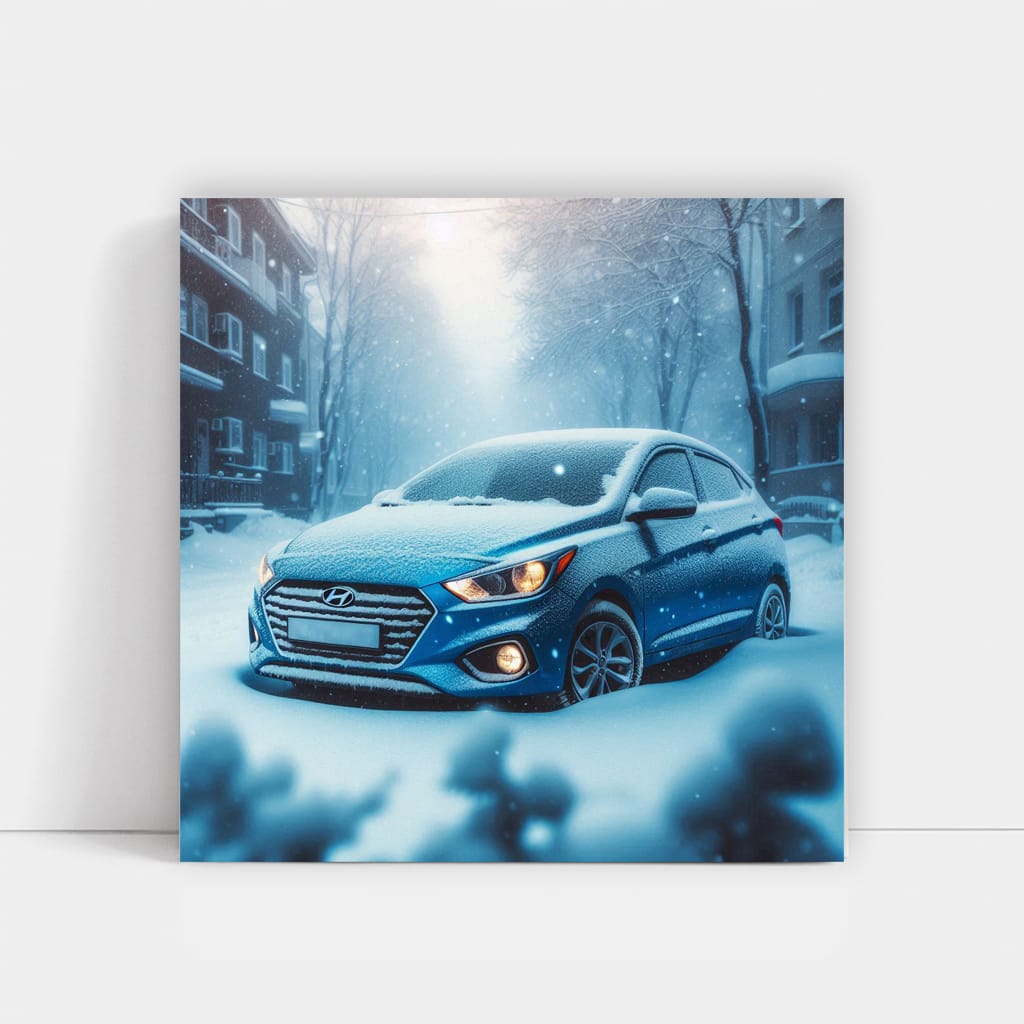 This painting is a real masterpiece for car fans. Hyundai Accent in winter looks like a beast on vacation. Wall art for those who appreciate power and style. Every time you look at this poster, you feel the roar of the engine and the cold of winter. See more from the collection: Hyundai Art