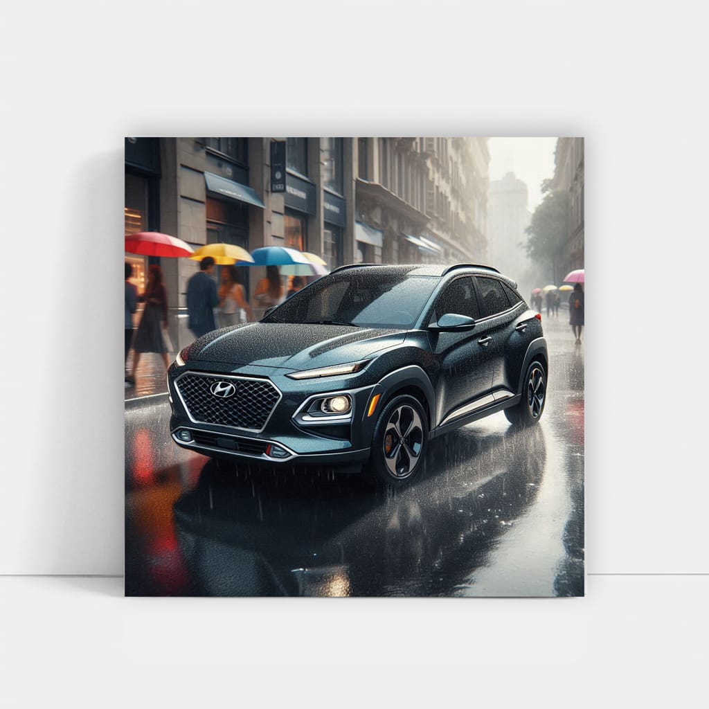 Hyundai Kona in Rain - Weather-Ready and Versatile Wall Art