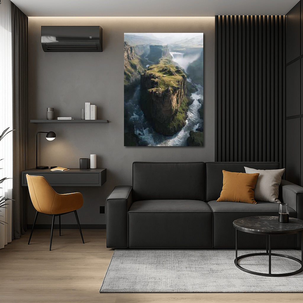 The magic of Icelandic landscapes in your home: a poster with breathtaking views where the land meets a waterfall, just like in a fairy tale. See more from the collection: Country Art