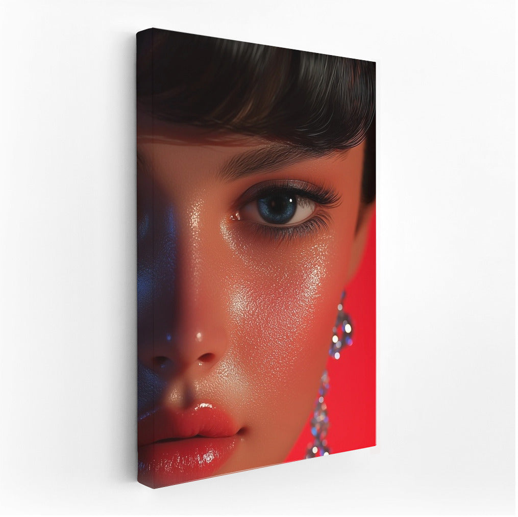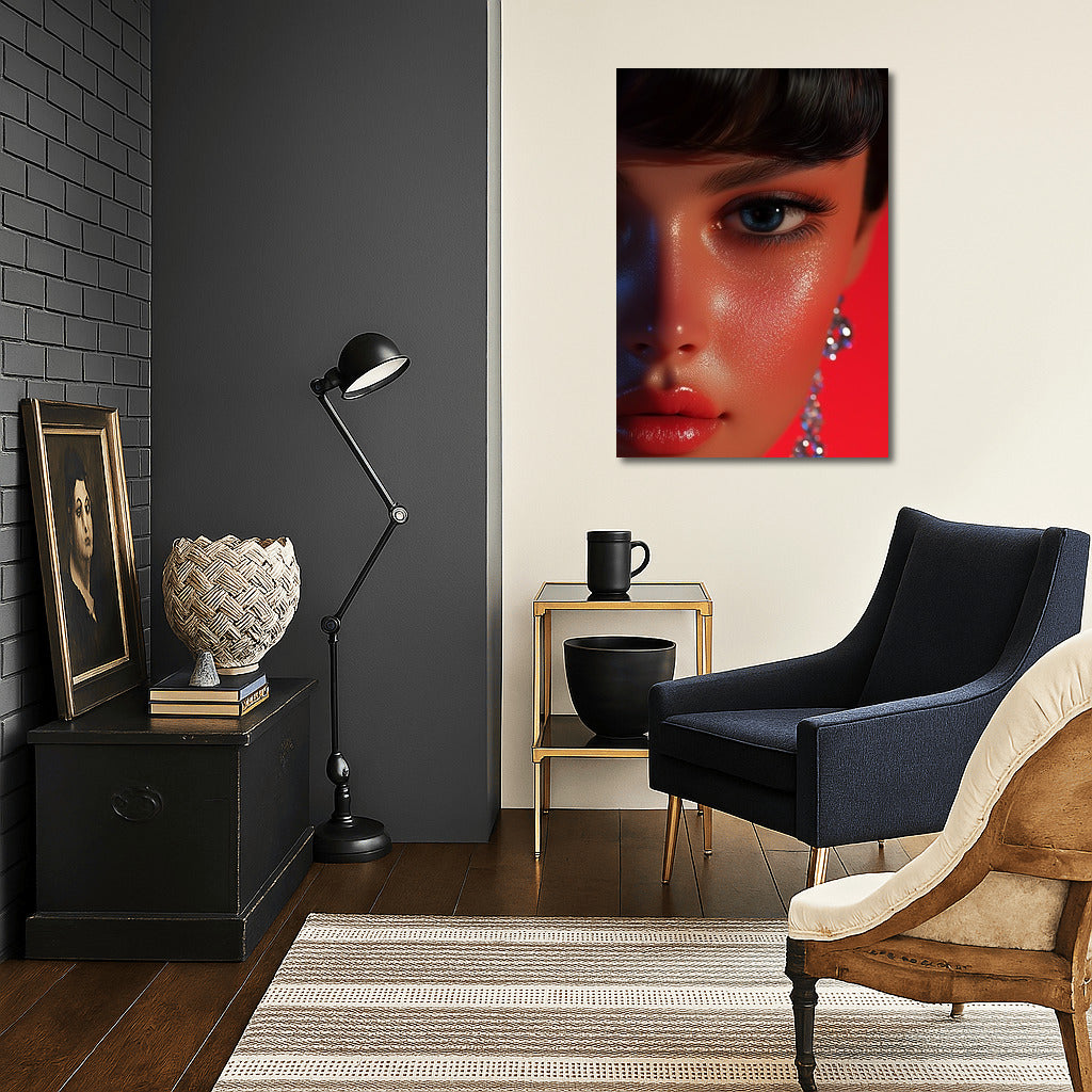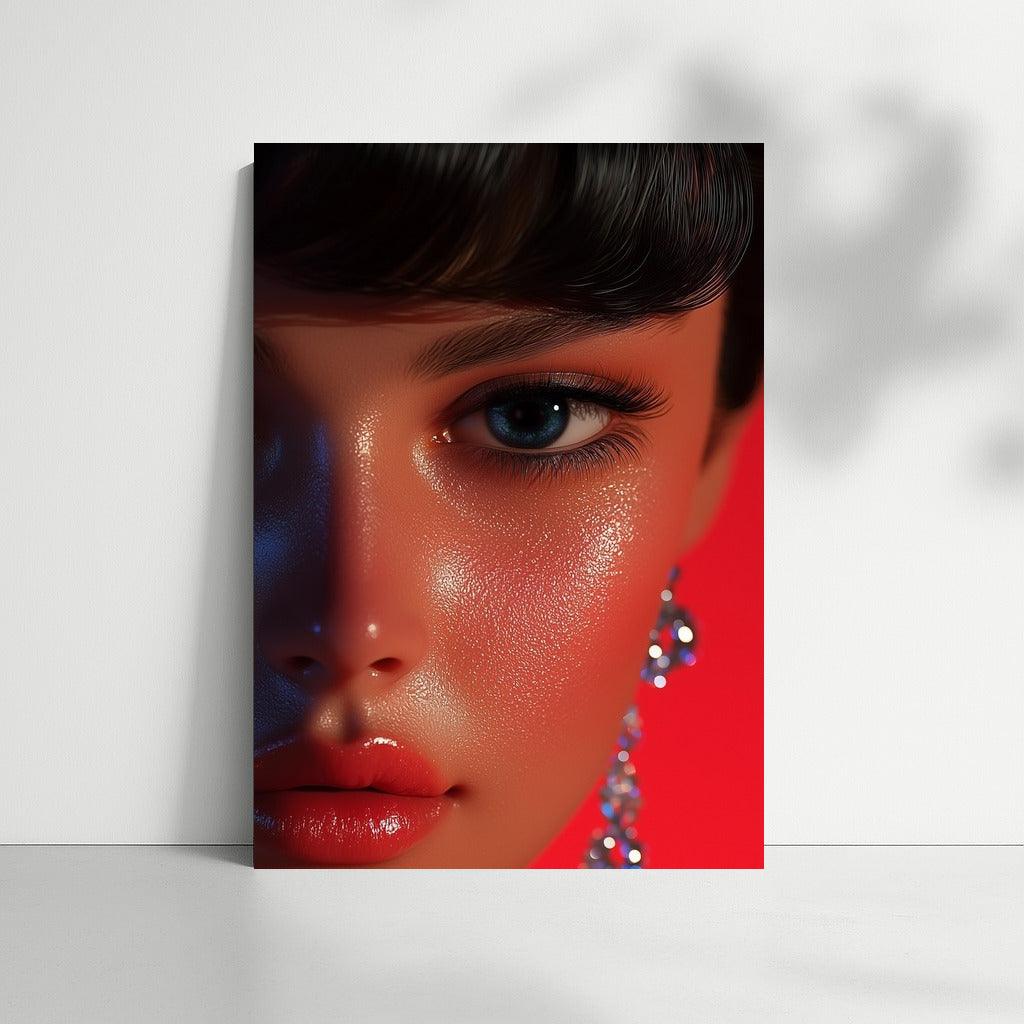 A mysterious portrait with an emphasis on bright eyes, sparkle and colorful details. Wall art that brings life to any space. See more from the collection: Mixed Wall Art