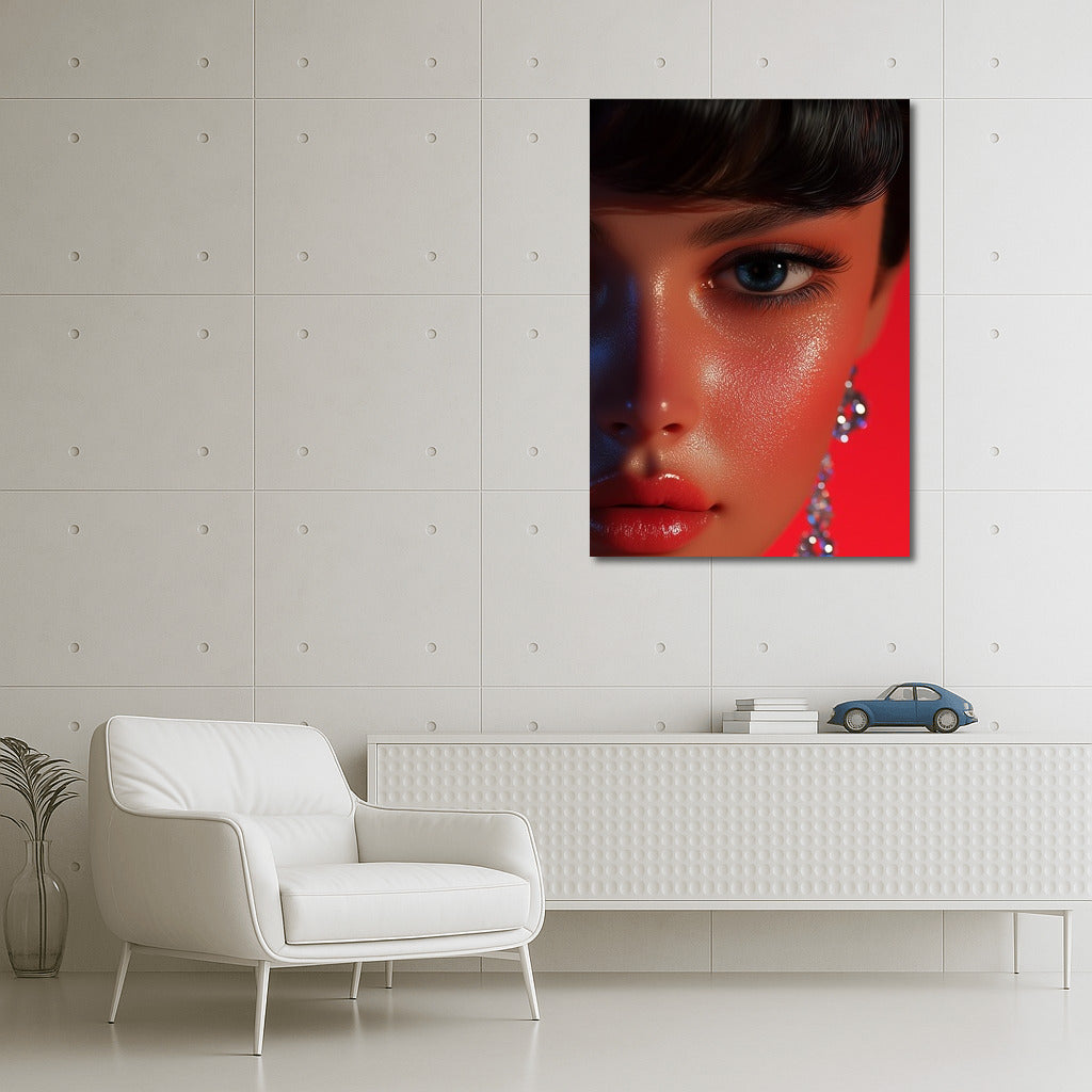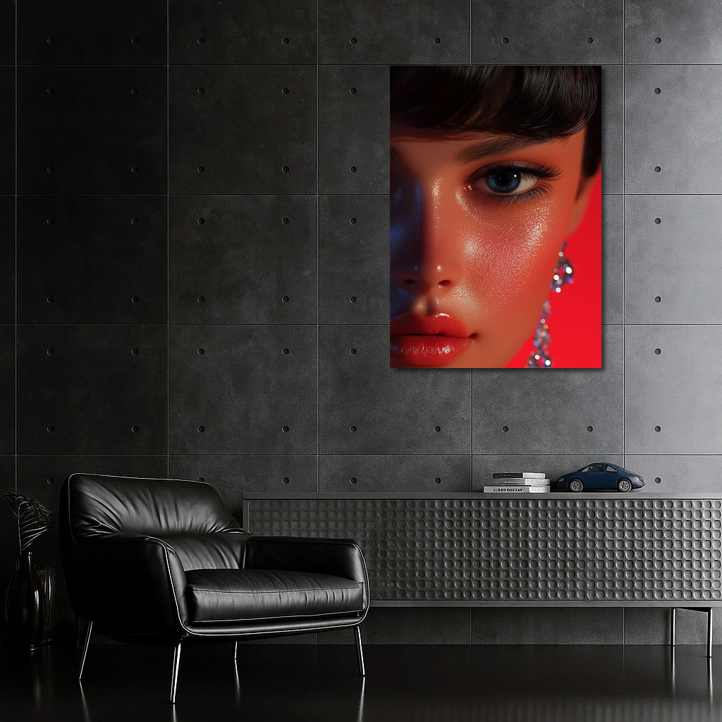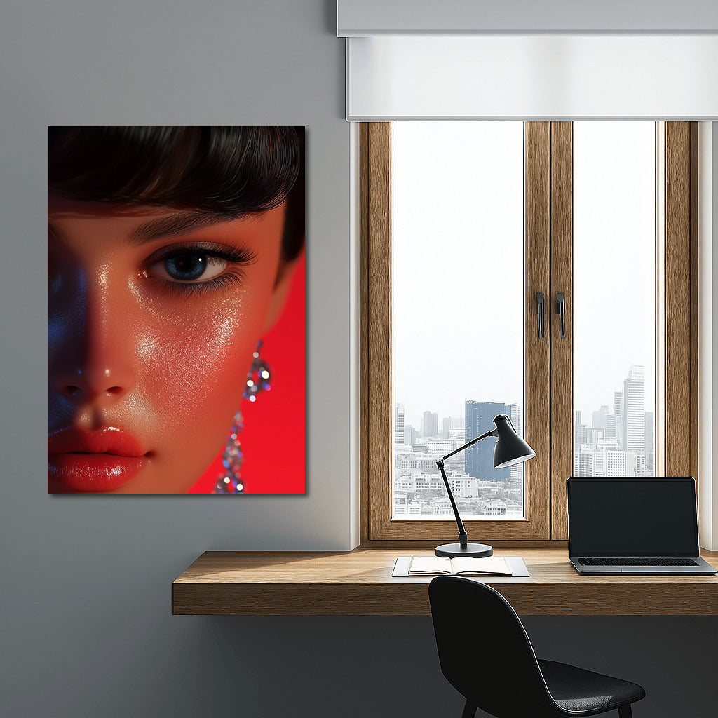A mysterious portrait with an emphasis on bright eyes, sparkle and colorful details. Wall art that brings life to any space. See more from the collection: Mixed Wall Art