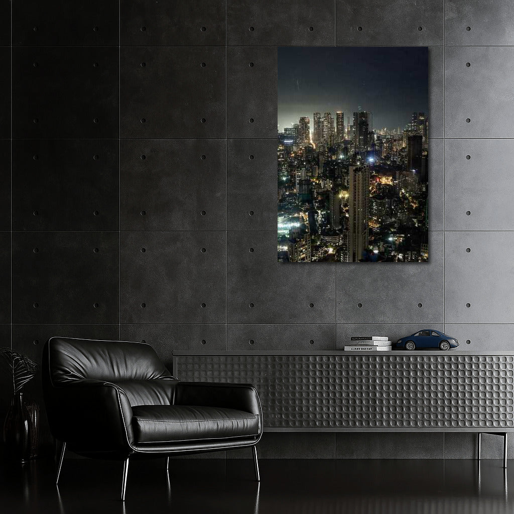 The Indian metropolis at night comes alive with lights, turning the wall into a portal to the heart of the country. Modernity and magic in one painting. See more from the collection: Country Art