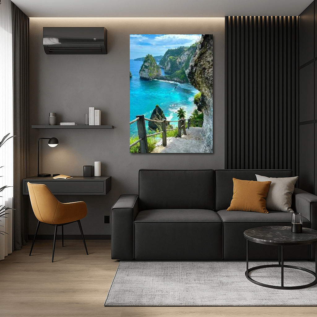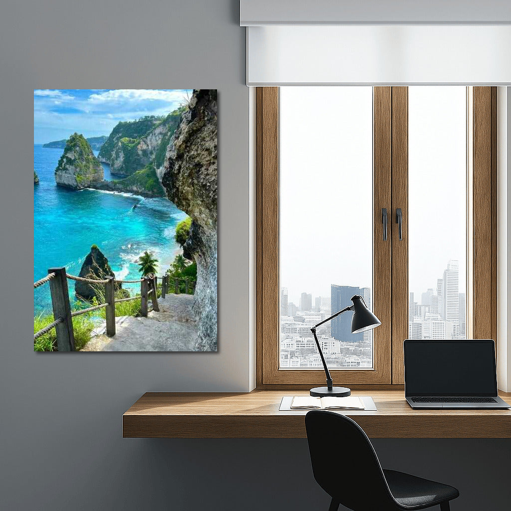 Poster of tropical paradise in Indonesia: azure waters and majestic rocks. Wall art that takes you to travel dreams. See more from the collection: Country Art