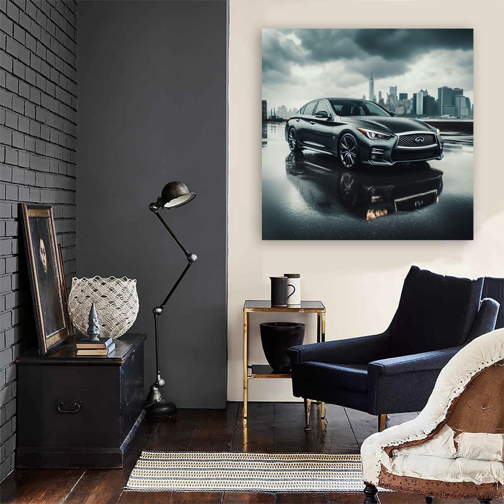 Hey bro, check out this bomb - a poster with an Infiniti Q50 on the background of clouds! This is wall art for real car geeks. Every day will be like a race - adrenaline and speed right in your room. Cool painting for those who live life at full speed! See more from the collection: Infiniti Art