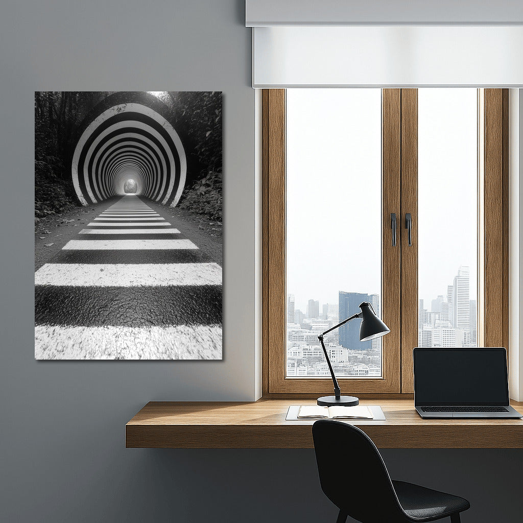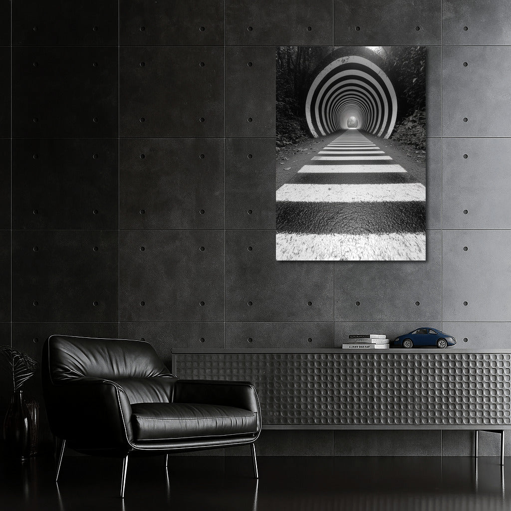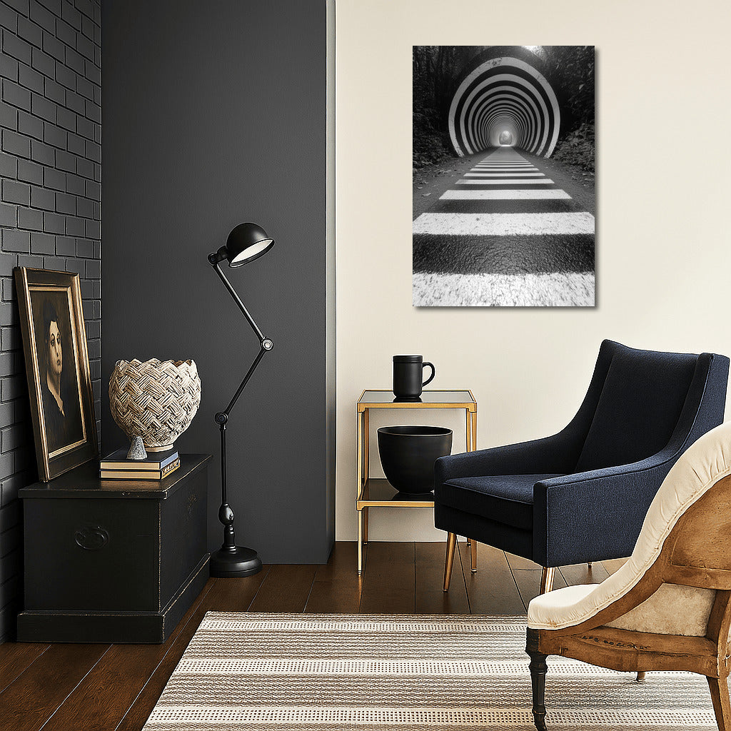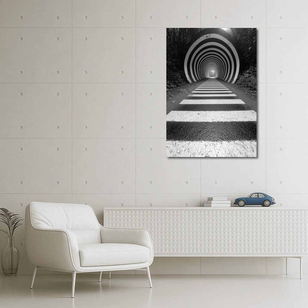 Mystical poster with the illusion of an endless tunnel. Black and white stripes guard your fantasies. Wall art for dreamers! See more from the collection: Black and White Art