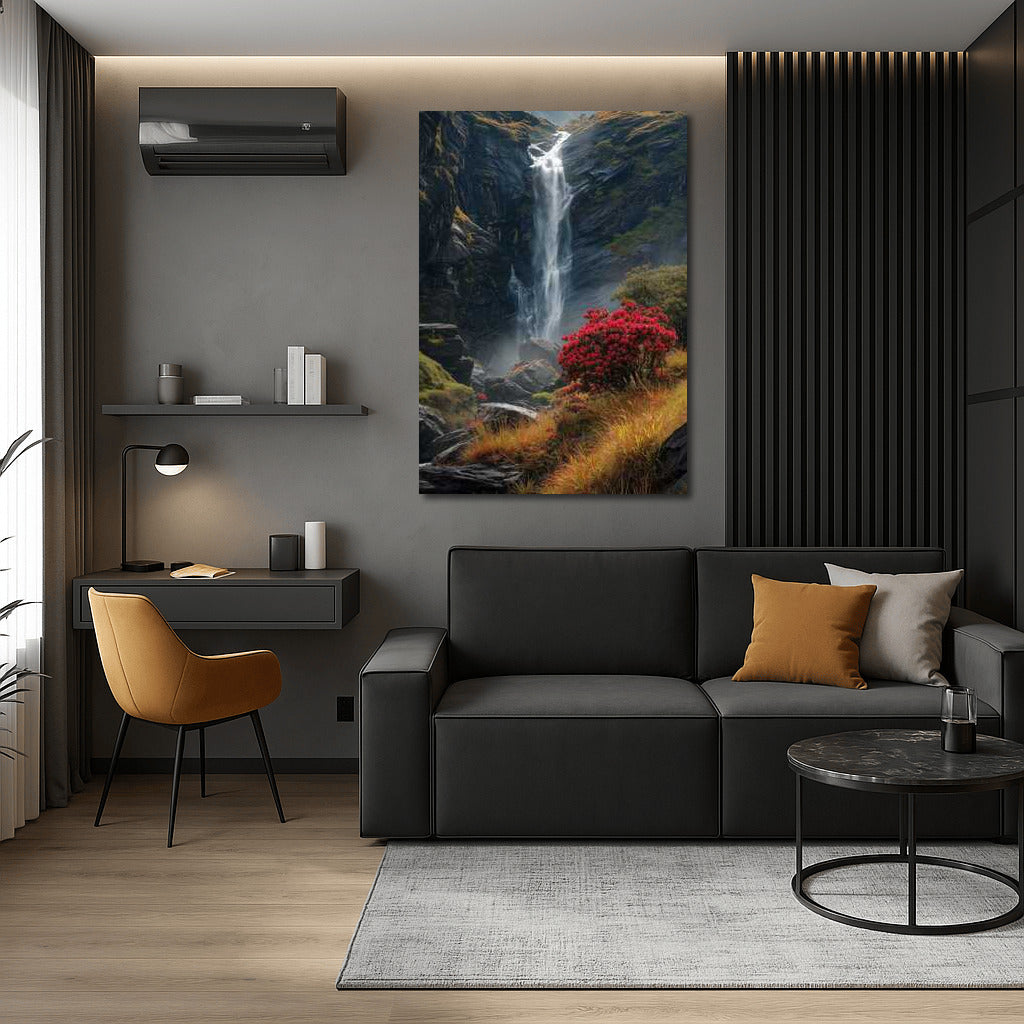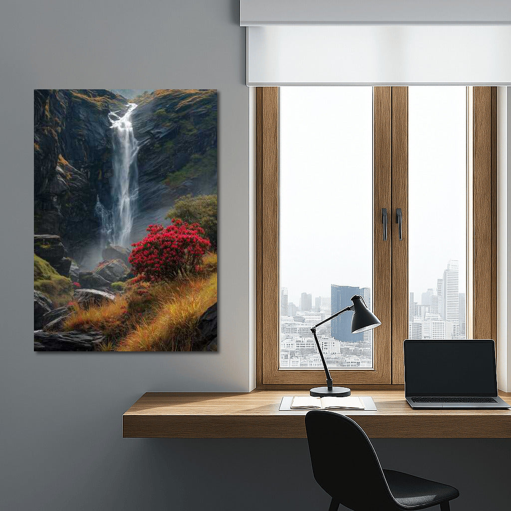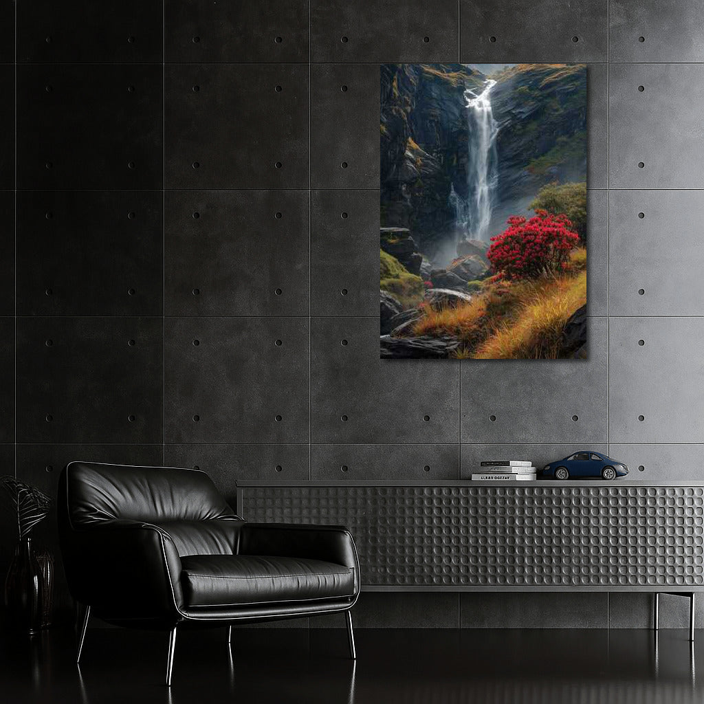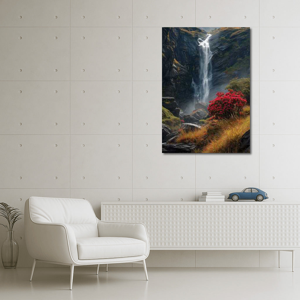 Immerse yourself in the magic of Ireland with this painting: a cascading waterfall among greenery and flowers will bring your wall art to life. See more from the collection: Country Art