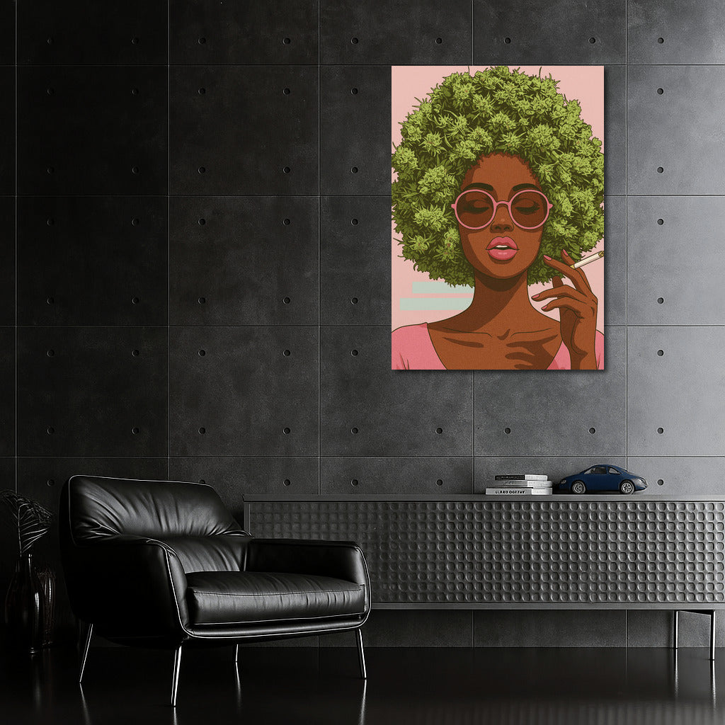 Cannabis Inspires: A poster with a mysterious figure and ironic style, turn wall art into a bright accent of your interior. See more from the collection: Cannabis Art