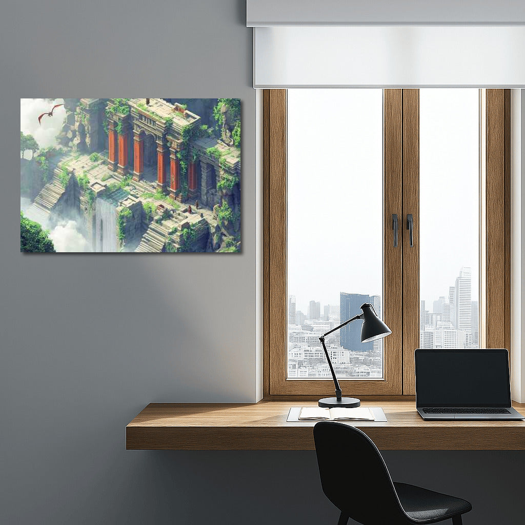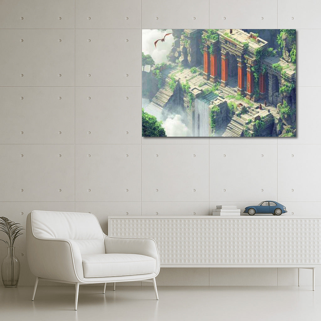 Isometric Fantasy: Dragon and Ancient Ruins Wall Art