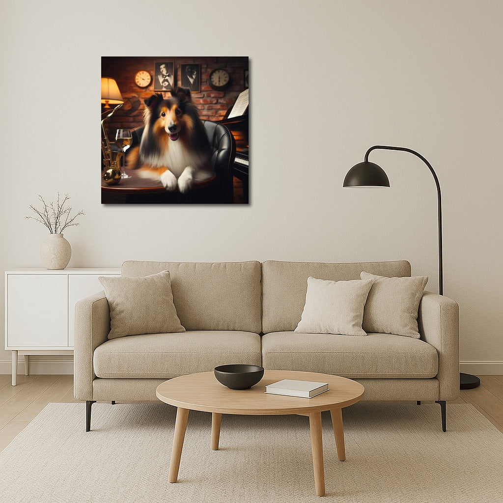 Jazz Evening with Sheltie: Shetland Sheepdog at the Music Club Wall Art