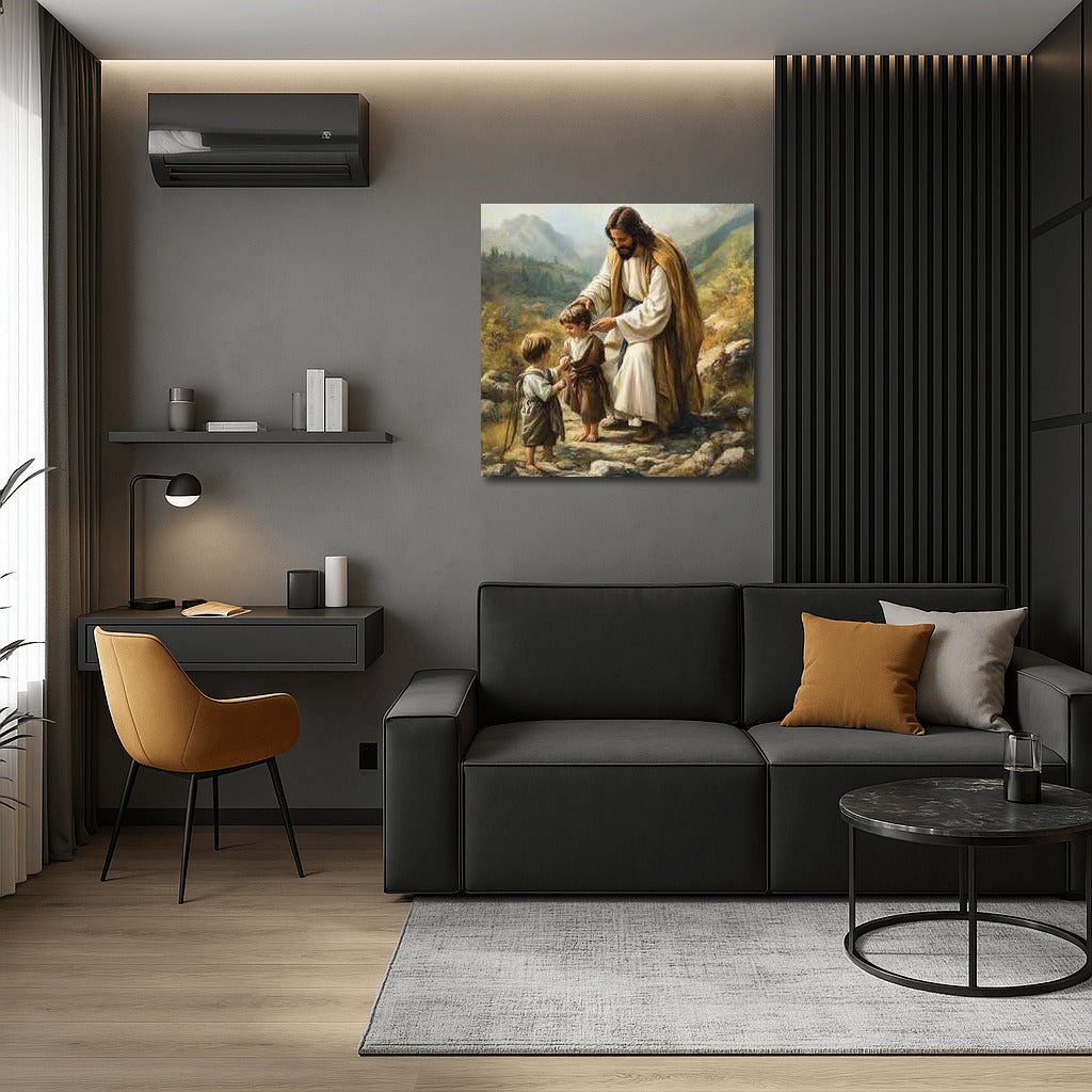 Jesus brings care and warmth to children in this inspiring poster. Wall art that will bring peace to your home. See more from the collection: Christianity / Jesus Art