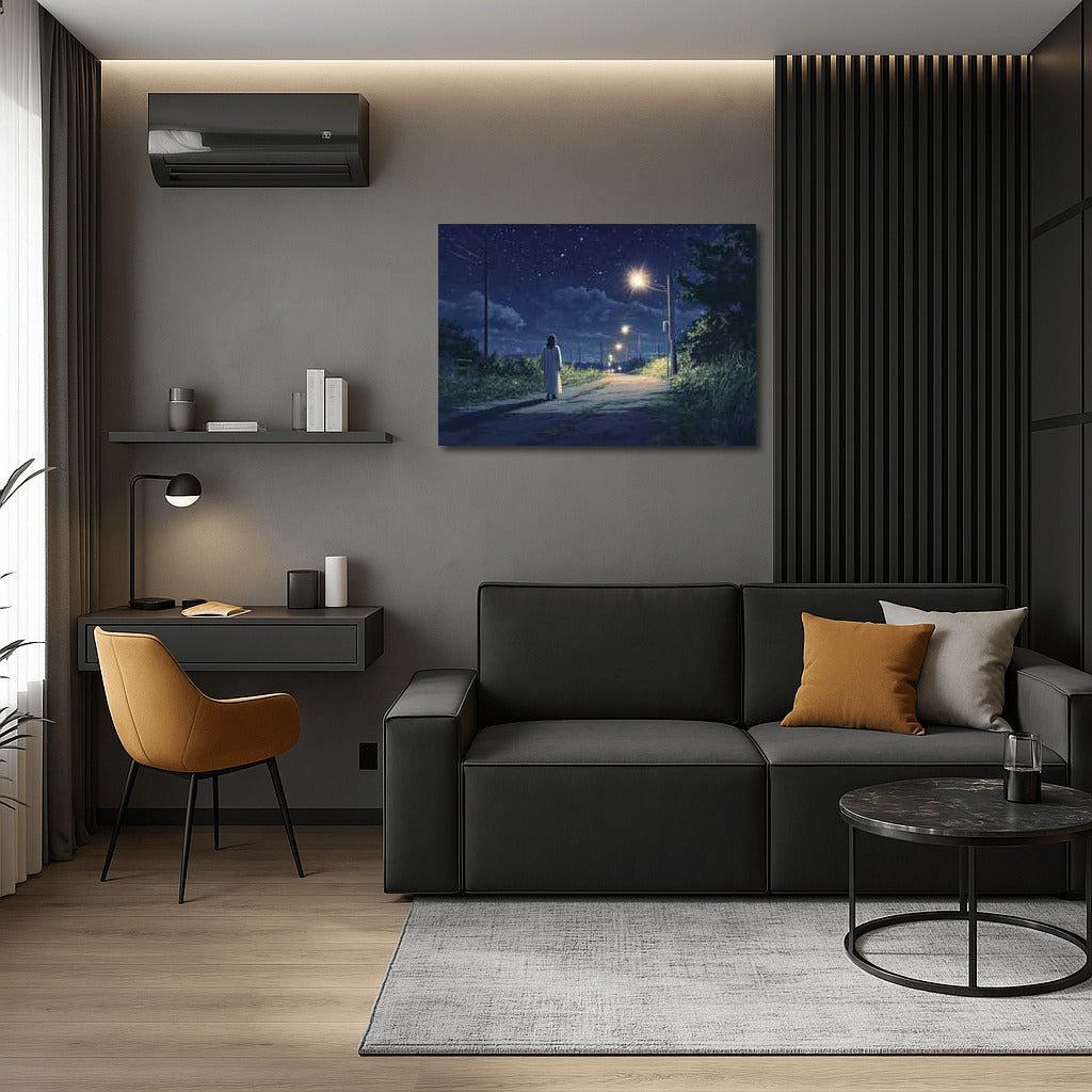 Starry night, silence and a lonely figure. This poster will bring an atmosphere of spiritual search and peace to your interior. See more from the collection: Christianity / Jesus Art