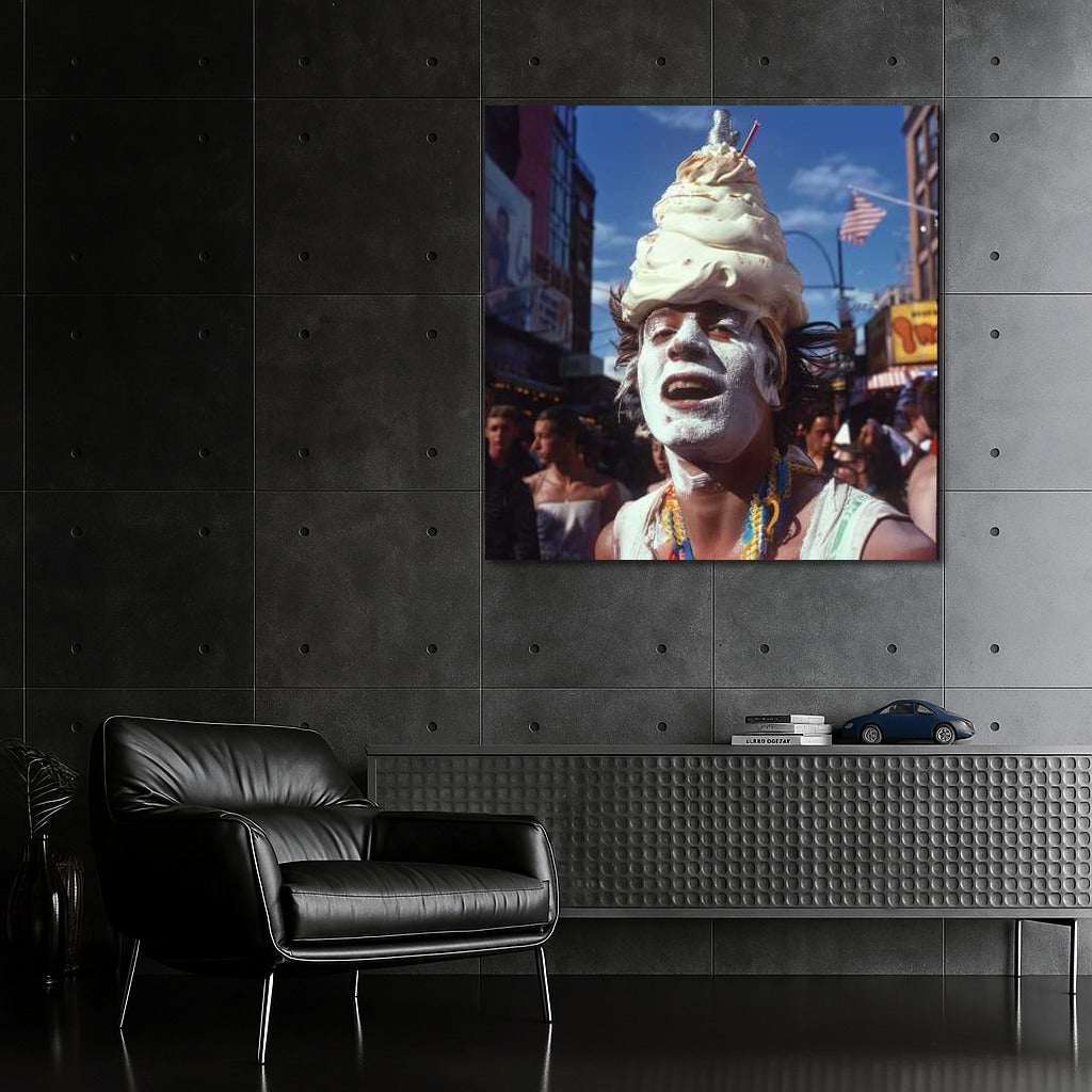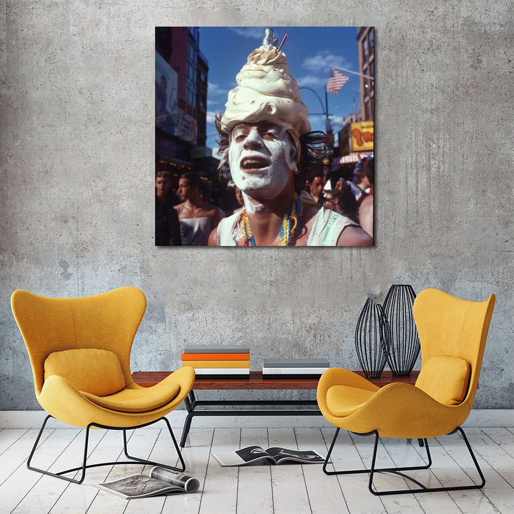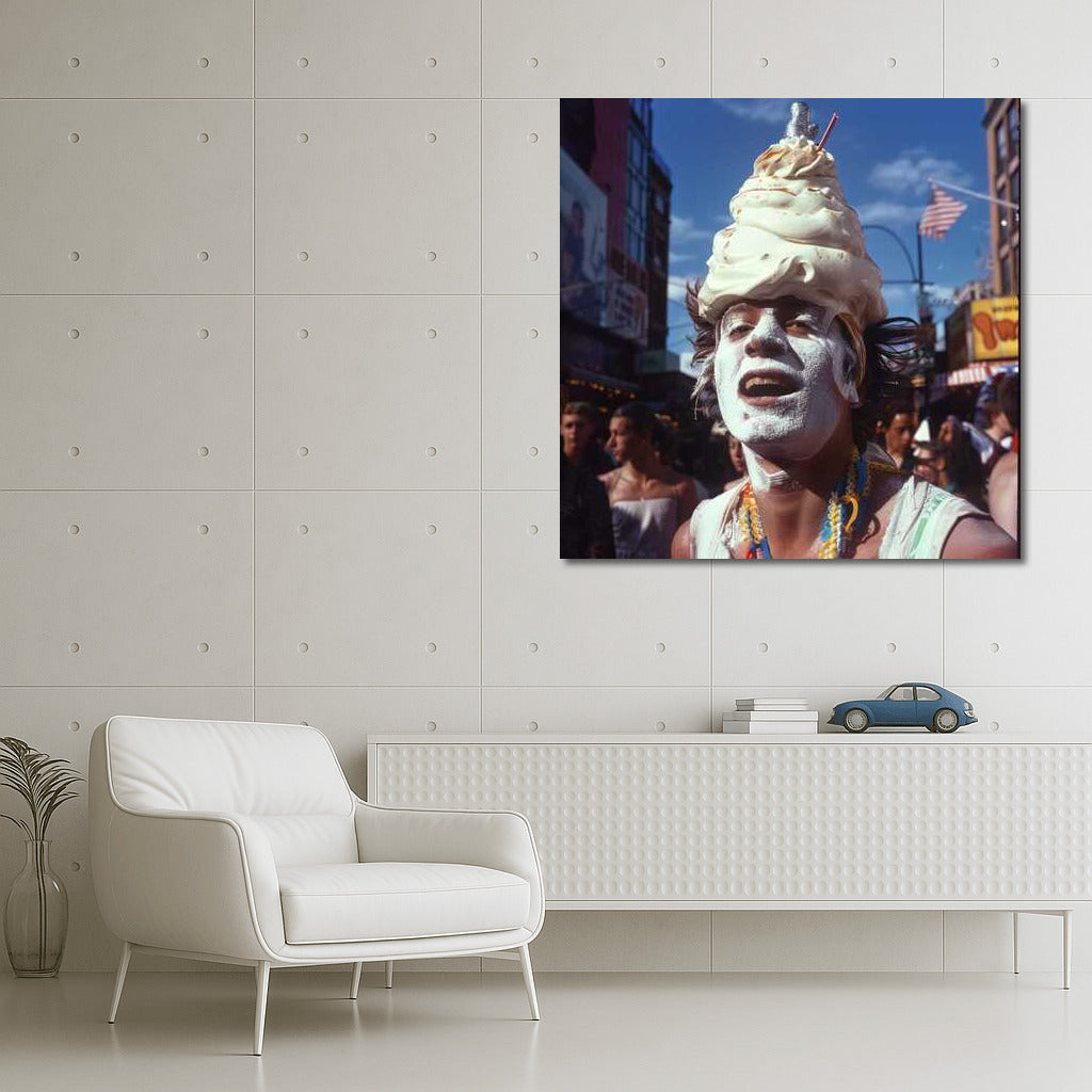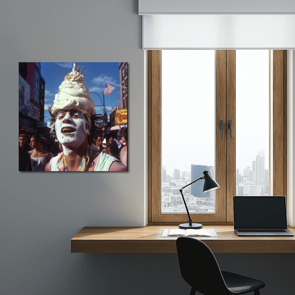 A humorous holiday poster: a funny face with a giant ice cream cap. Wall art that will make you laugh! See more from the collection: Humor Art
