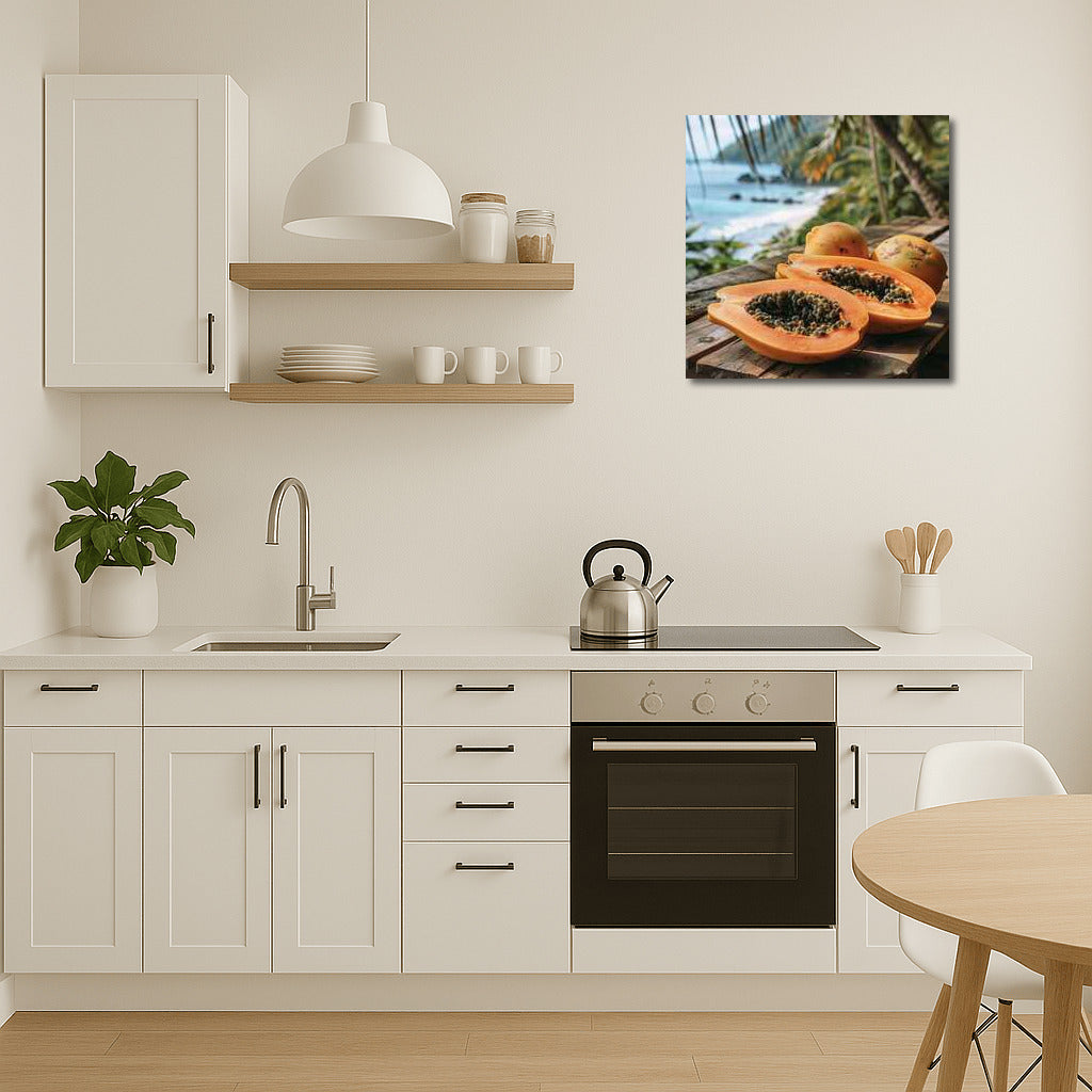 Juicy Papaya on a Wooden Table: Tropical Taste in the Interior Wall Art