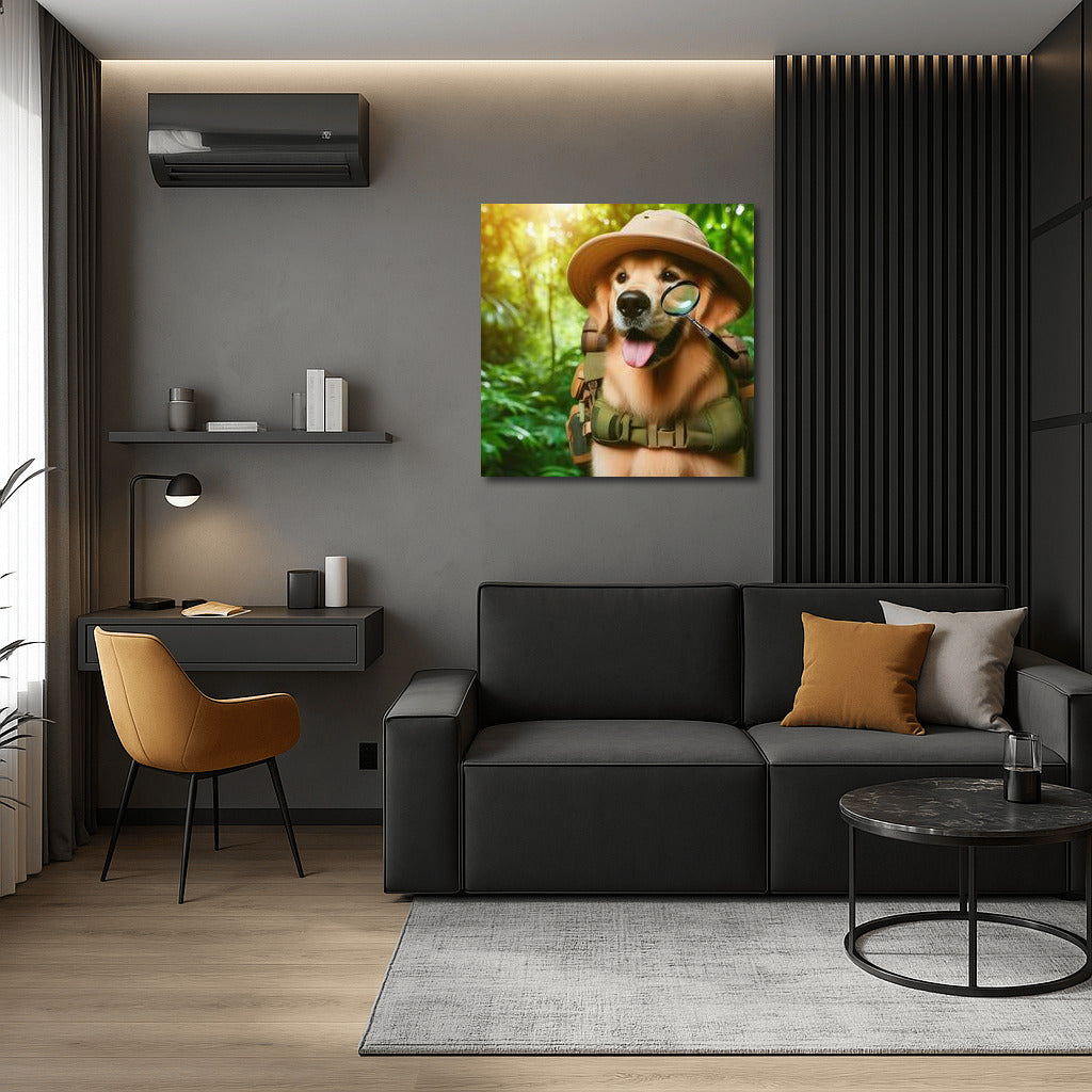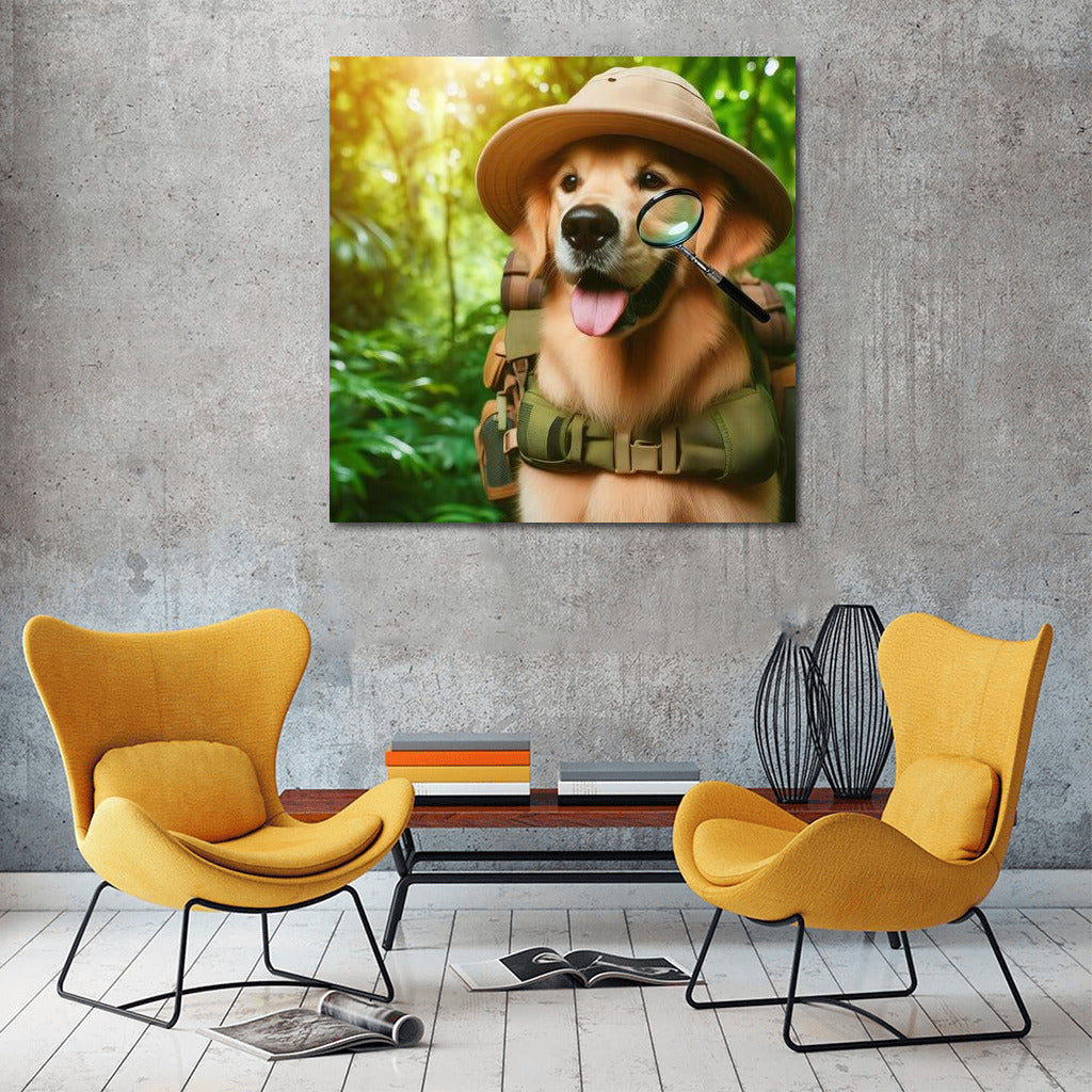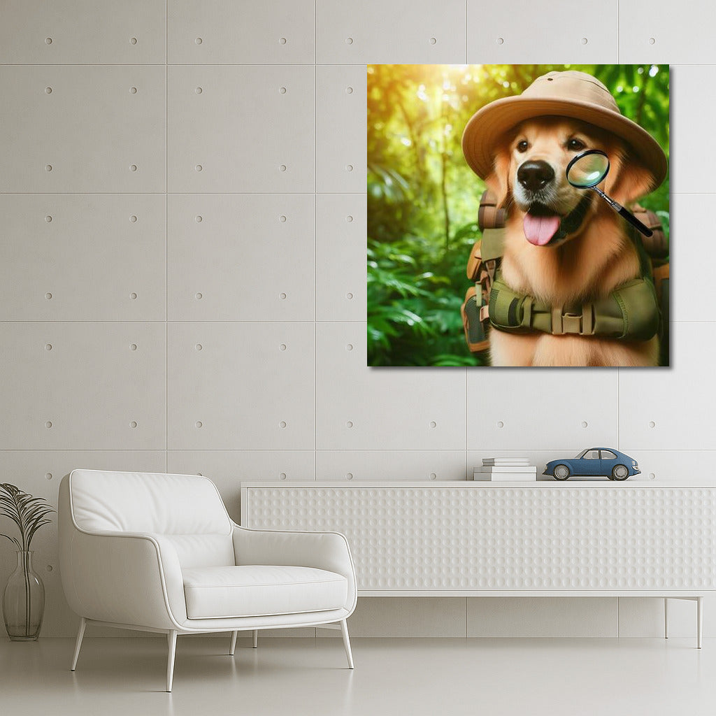 Jungle Explorer Dog Poster: A cute explorer in the jungle with a magnifying glass. Add adventure to your wall art! See more from the collection: Animals Art