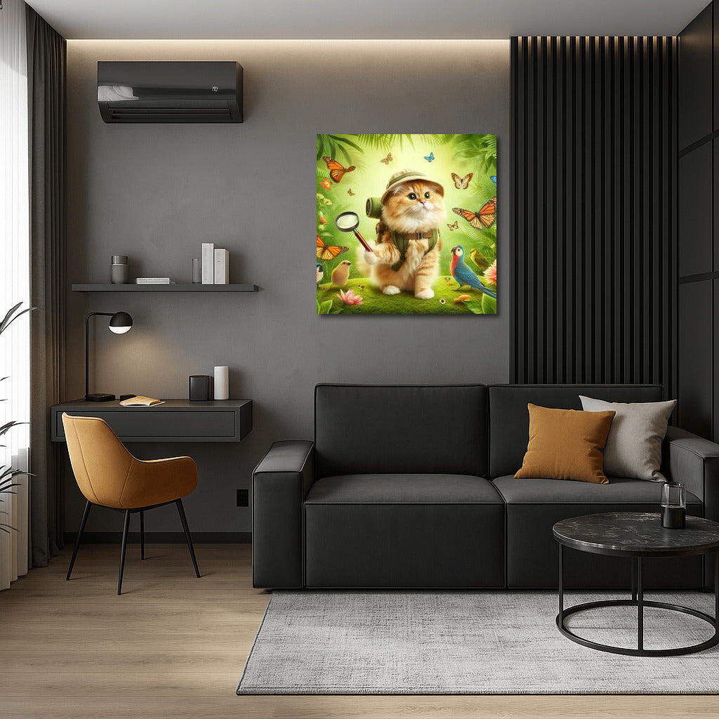 Jungle Explorer Cat: A Fluffy Adventure with Butterflies and Birds Wall Art