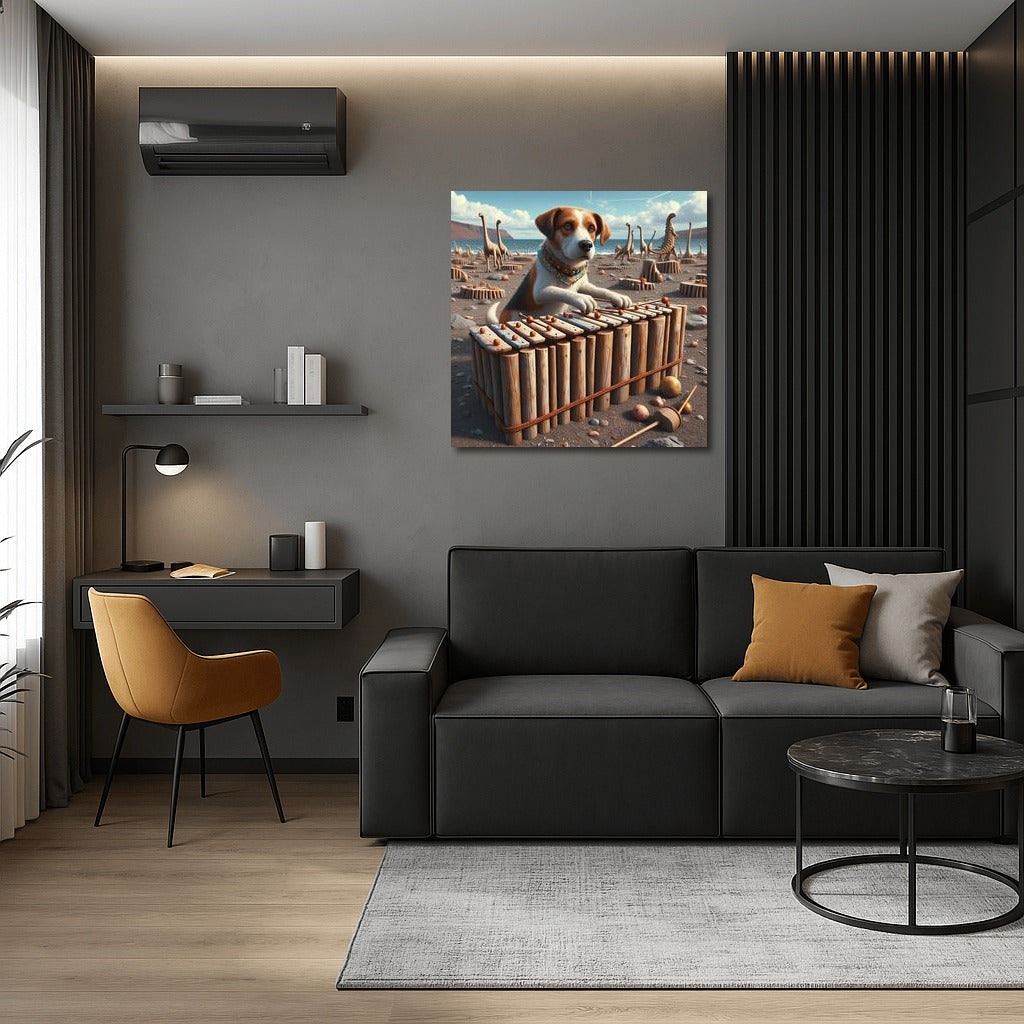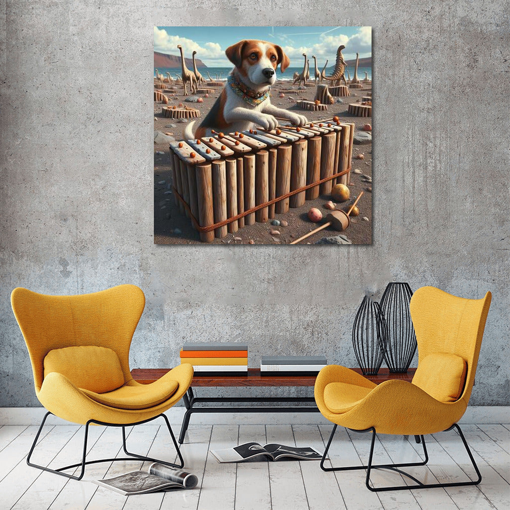 Jurassic Melodies: Dog and Dinosaur Bone Xylophone Wall Art