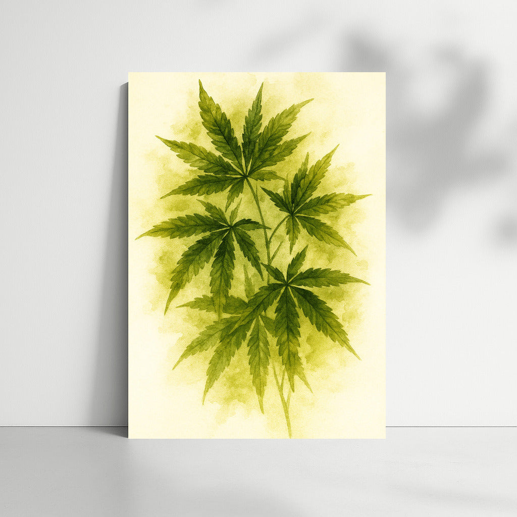 Cannabis Poster: A green kaleidoscope of leaves inspiring calm and freedom. Perfect wall art for relaxation. See more from the collection: Cannabis Art