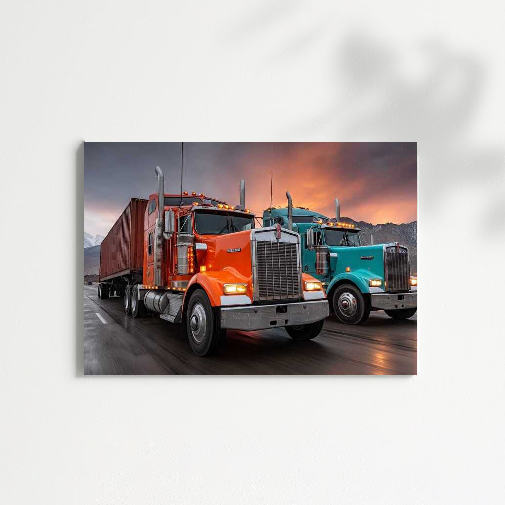 Kenworth Truck Sunset Race: Highway Performance Wall Art