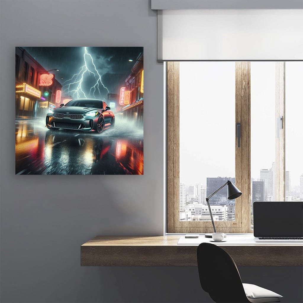 Kia Stinger in Thunderstorm - Unleash Power within Wall Art
