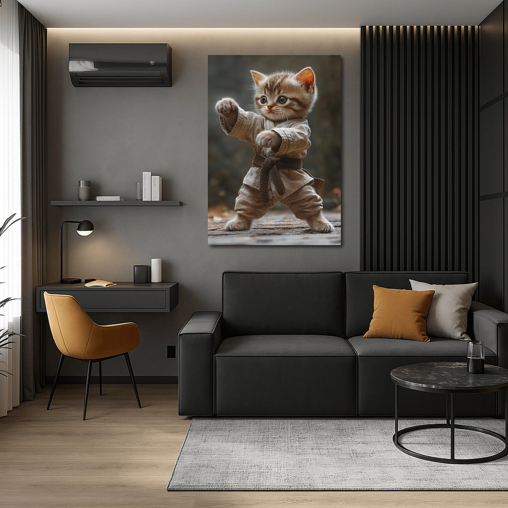 Fighting spirit in every paw! Karate kitten wall art will add humor and energy to your interior. See more from the collection: Animals Art