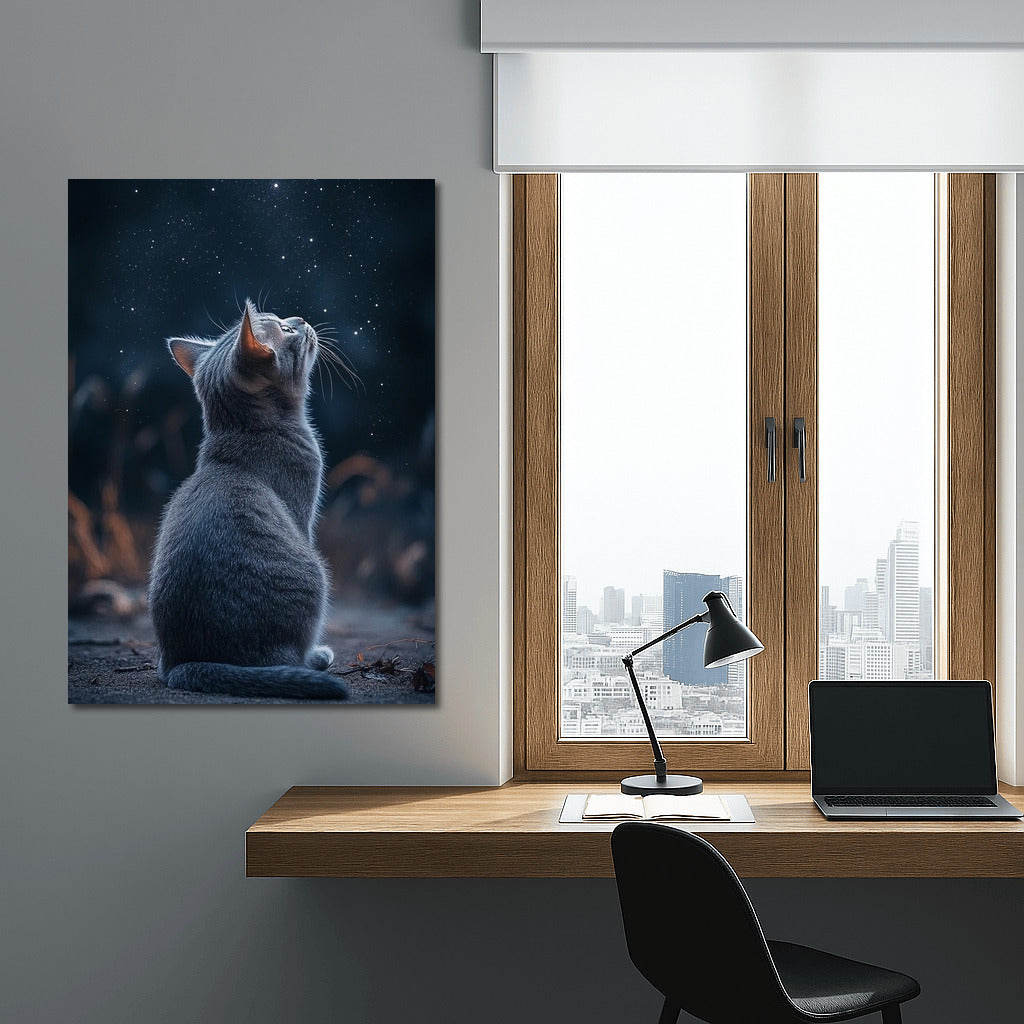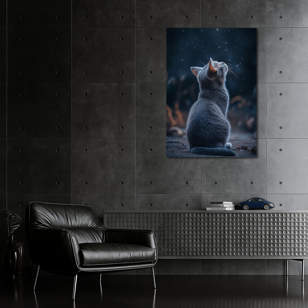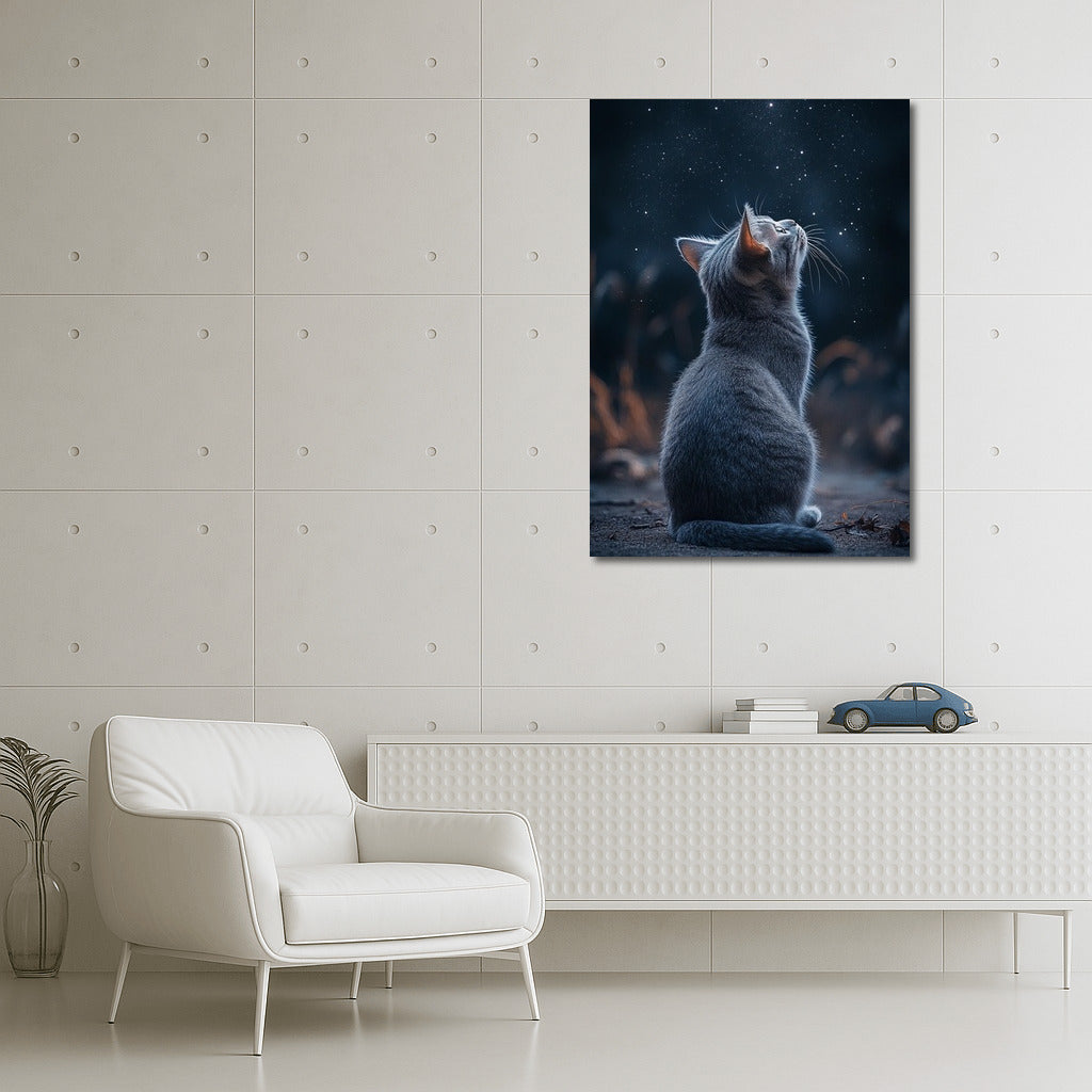 Kitten dreamily looks at the stars. This poster will add magic and coziness to your space. Wall art full of tenderness. See more from the collection: Animals Art