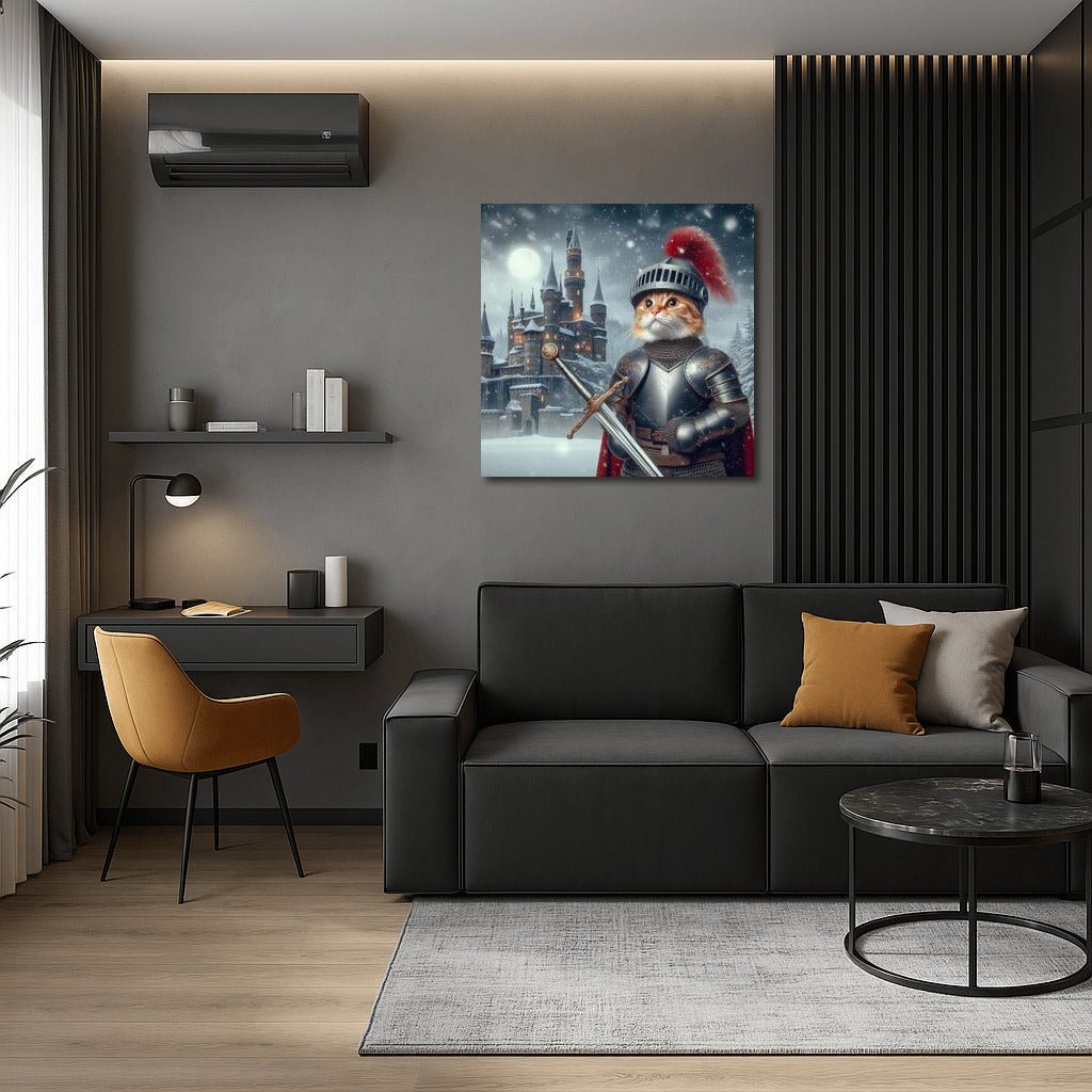 Knight-Cat Britannic: Defender of the Castle in the Style of the Godfather Wall Art