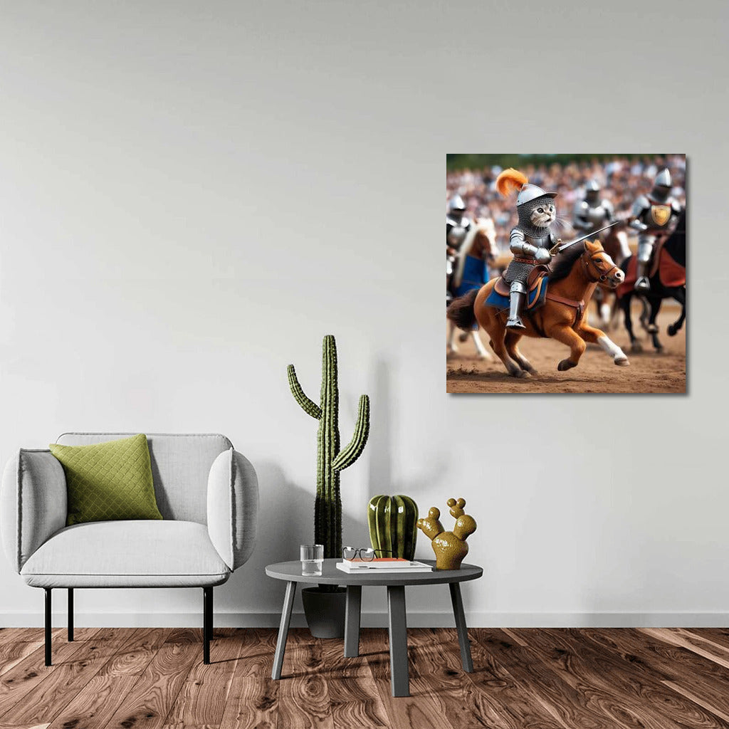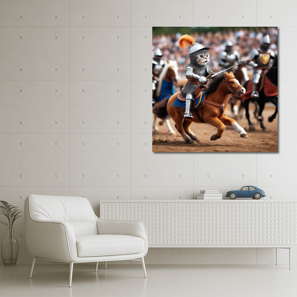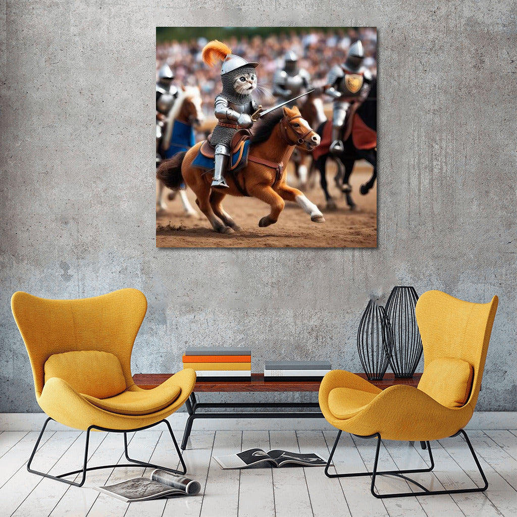 Knight Cat in Medieval Tournament: Furry Warrior in Armor Wall Art