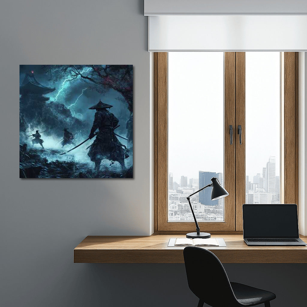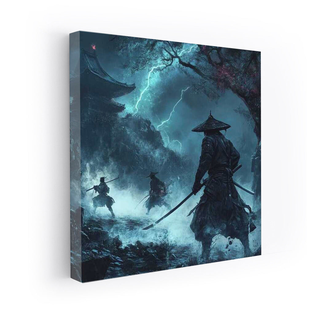 Immerse yourself in the world of epic Fantasy with wall art: warriors in the fog, ready for battle under flashes of lightning. See more from the collection: Fantasy Art