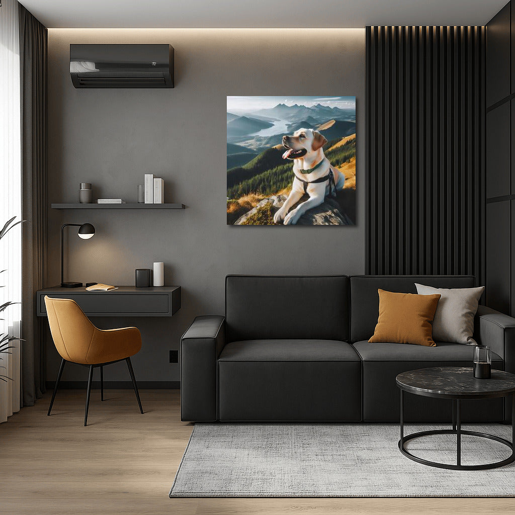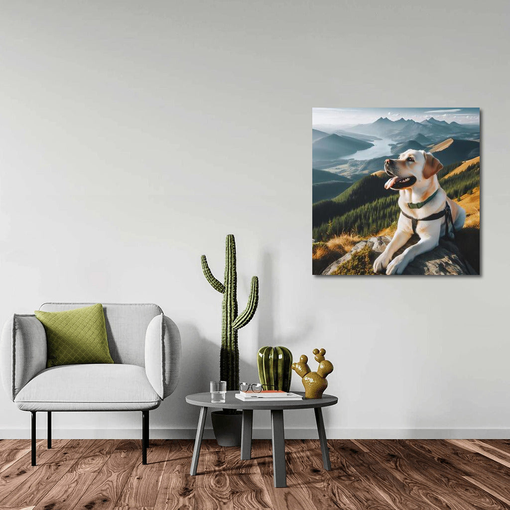 Labrador on top of a mountain enjoying a stunning view. Perfect painting for your wall art! See more from the collection: Animals Art