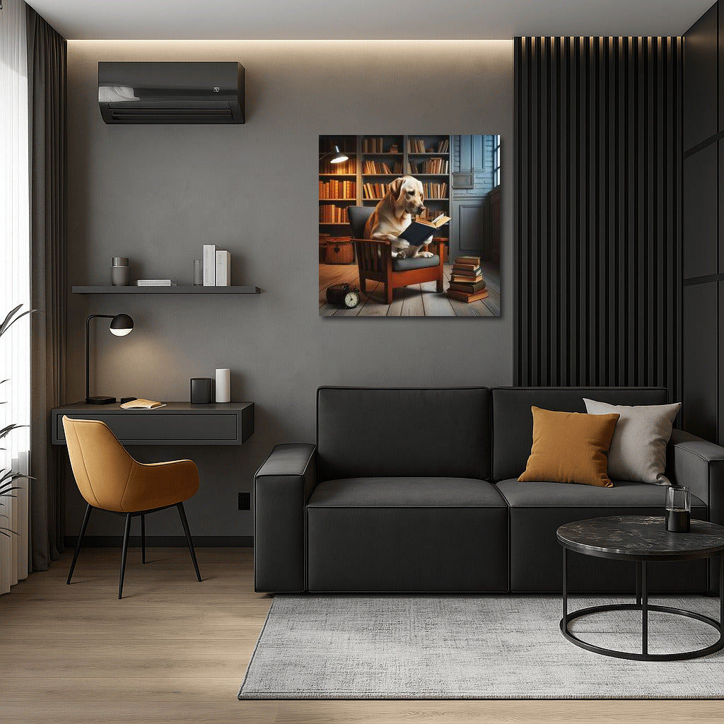 Labrador Poster in the Library: Coziness and intelligence in every detail of wall art! Ideal for book and dog lovers. See more from the collection: Animals Art