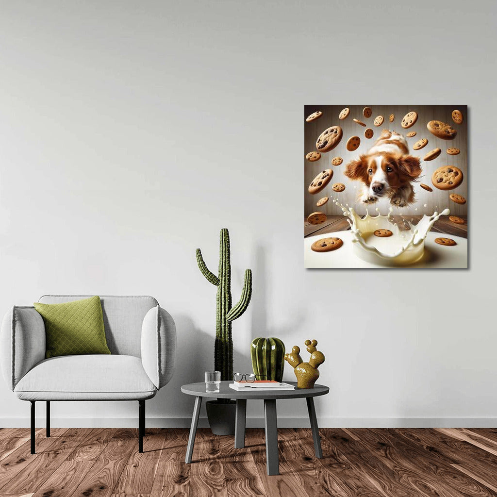 Labrador Jumps into Milk Cloud with Cookies Wall Art