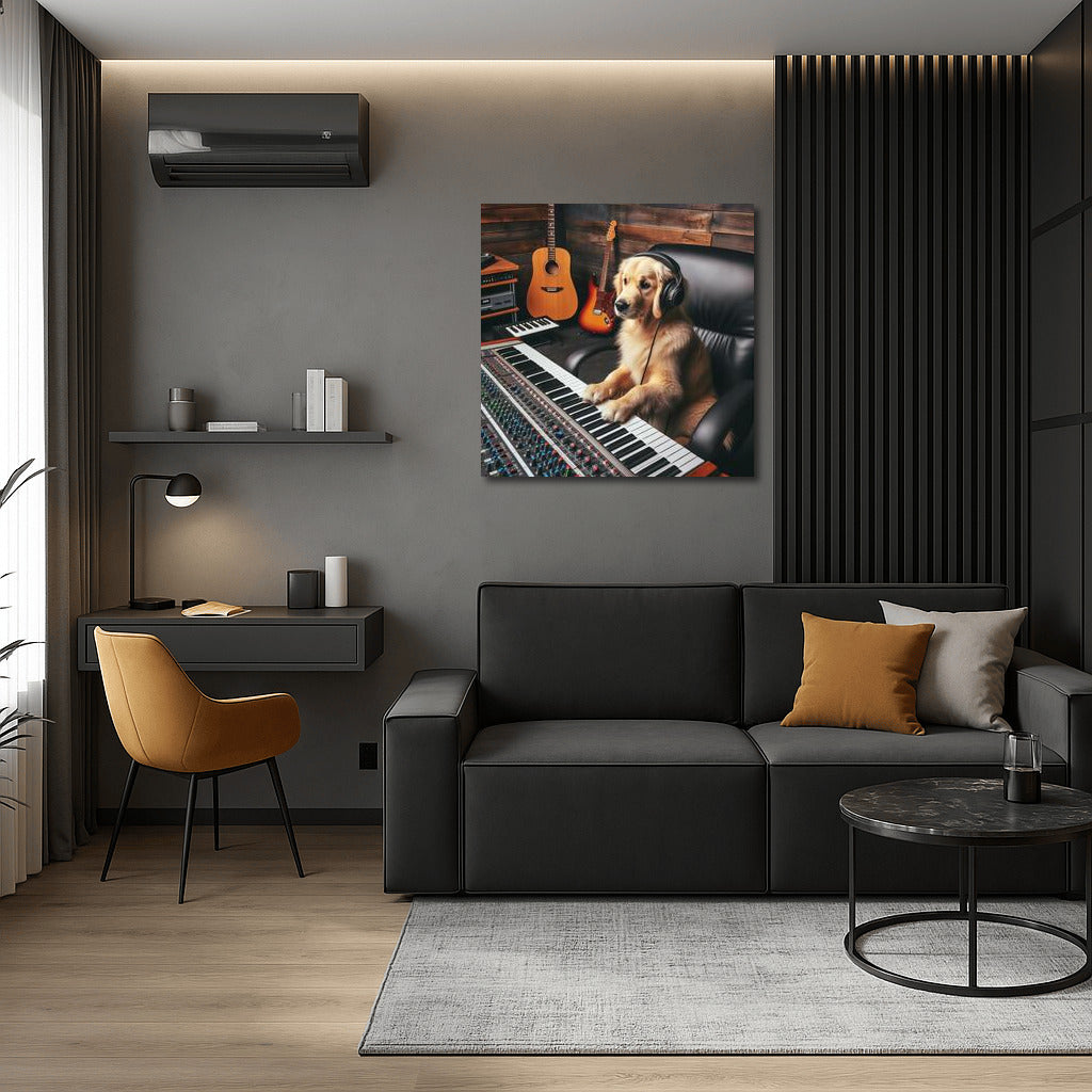 Labrador Melodies: Dog at the Mixer in the Music Studio Wall Art