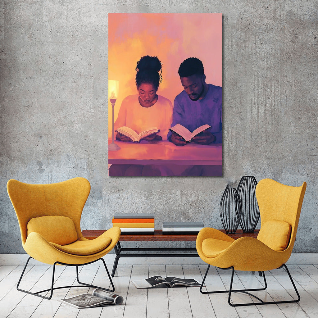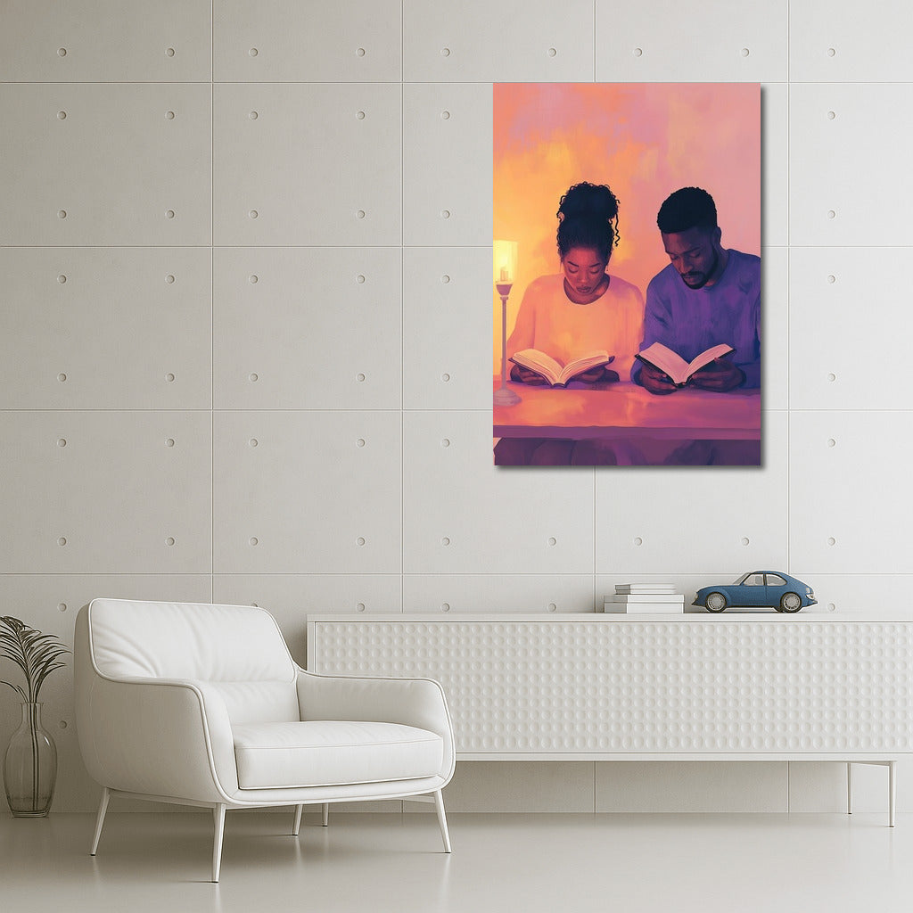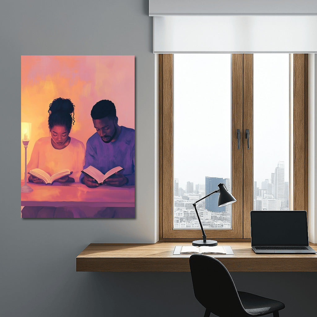 Cozy evening: a poster with two readers in the warm light of a lamp. Add an atmosphere of calm and warmth to the interior. See more from the collection: Love Art