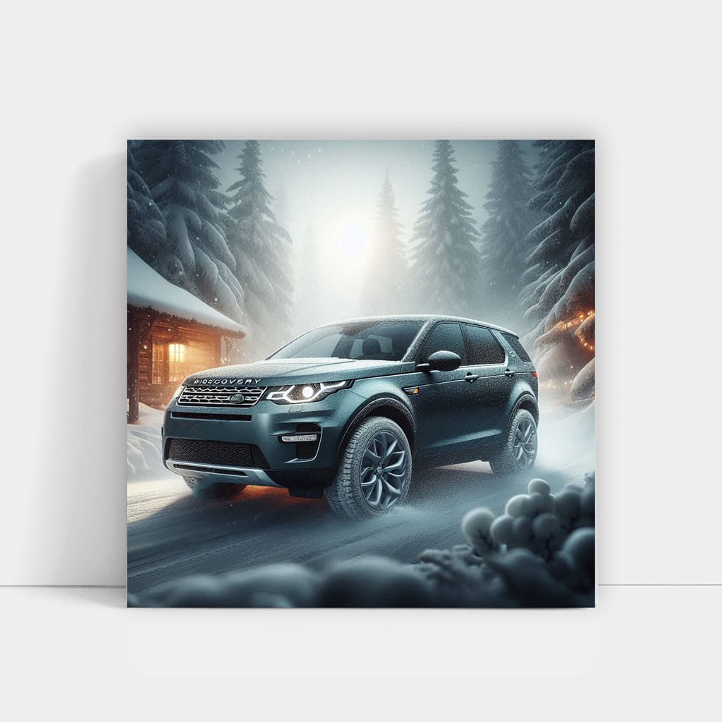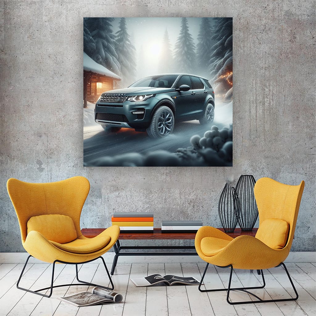 Dude, if you're a fan of cars, then a poster of a Land Rover Discovery Sport in a winter setting is what you need. Hang this painting on the wall and it's as if you can hear the roar of the engine. Wall art for those who know a lot about real cars. See more from the collection: Land Rover Art