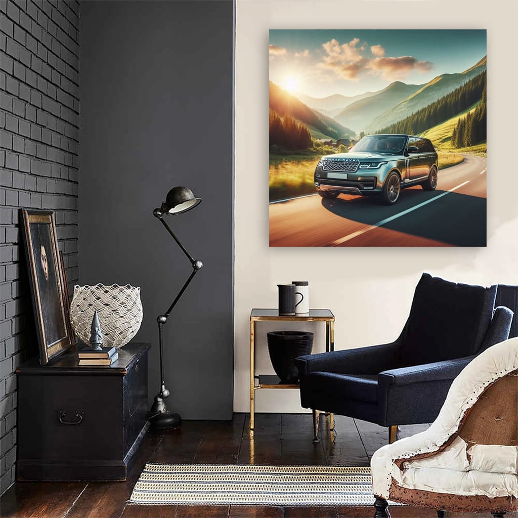 Hey bro, look at this poster! This wall art is a dream come true for all car lovers. Land Rover Range Rover on the road, like the king of asphalt. This is a painting that charges adrenaline and reminds of freedom and speed. Hang it on your wall and feel the power! See more from the collection: Land Rover Art