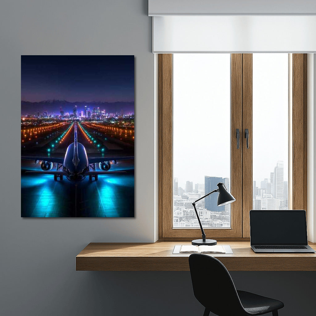 Las Vegas Night Glow: A poster of a plane preparing to take off immerses you in the dynamic energy of the city. See more from the collection: Cityscapes & Skylines Art