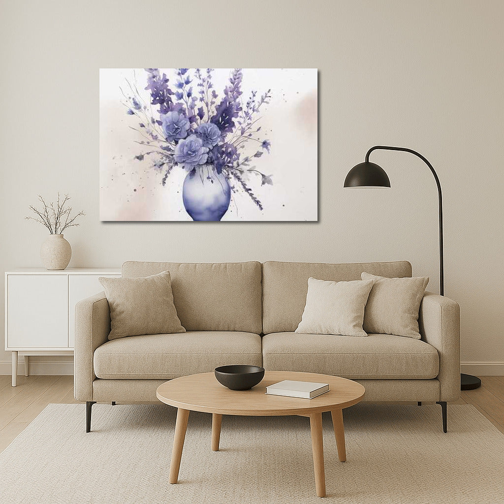 Delicate lavender and roses in a tall vase. The perfect poster to create coziness and harmony in your space. Wall art with soul. See more from the collection: Flowers Art